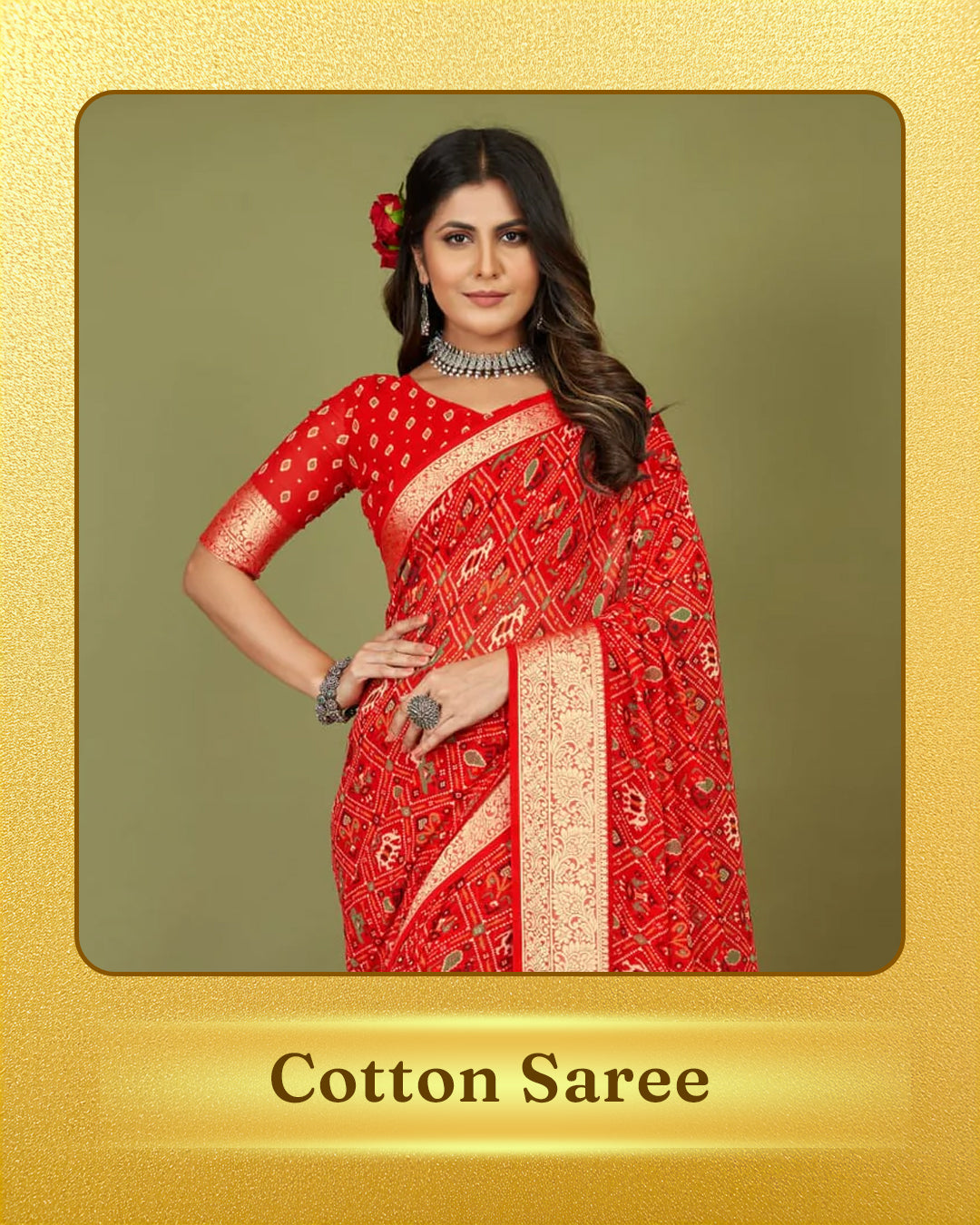 Tanmira Latest Chinon Crape Floral Print Gotapatti Cutwork Border Saree Red sana