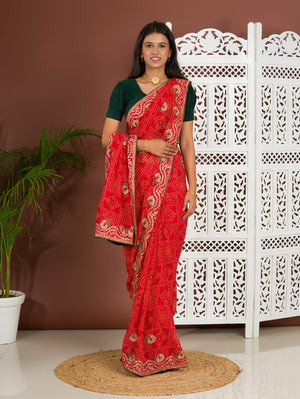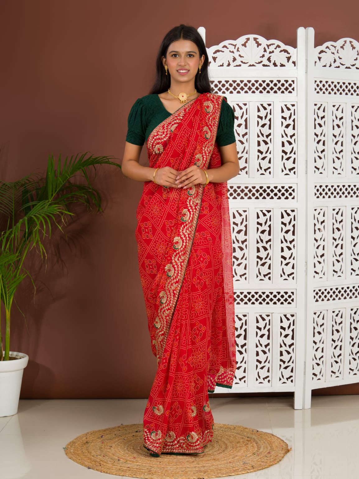 Home Tanmira New Pure Georgette Bandhani Saree With Blouse