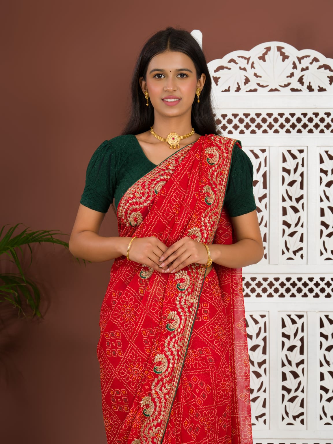 Tanmira New Pure Georgette Bandhani Saree With Blouse