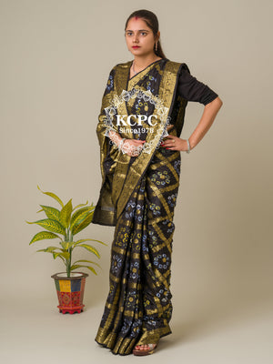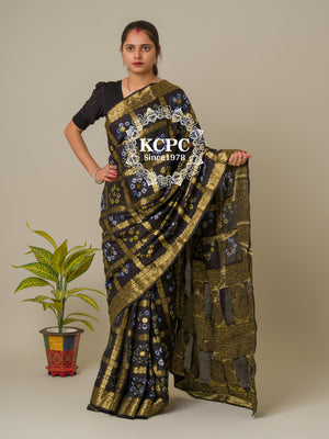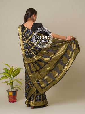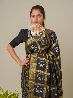 Tanmira Bandhej silk gharchola Single coin saree Black