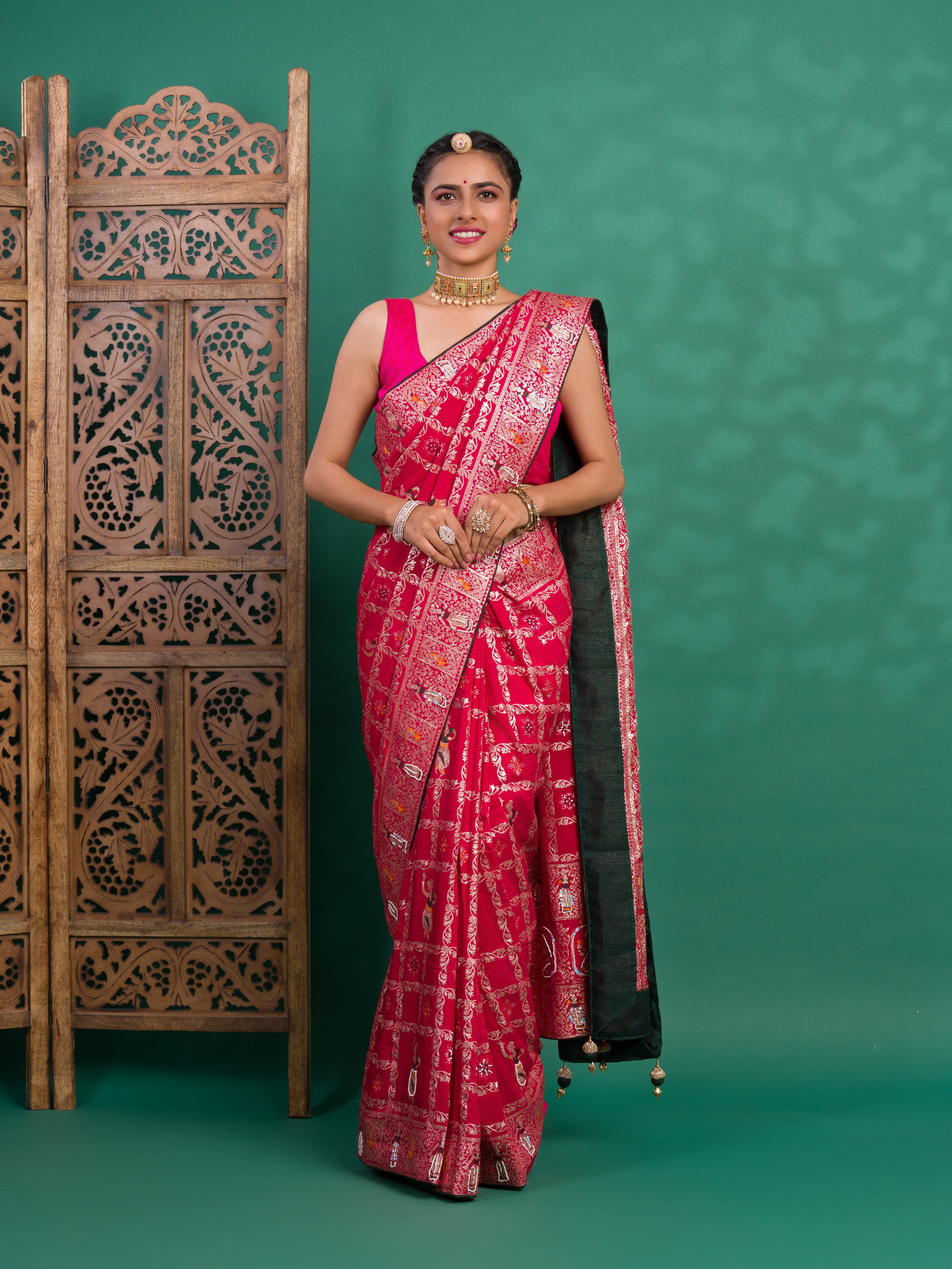 Tanmira New Designer Rajwadi Style Gharchola Bandhej Sarees Rani