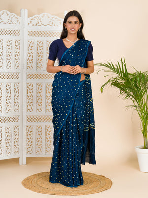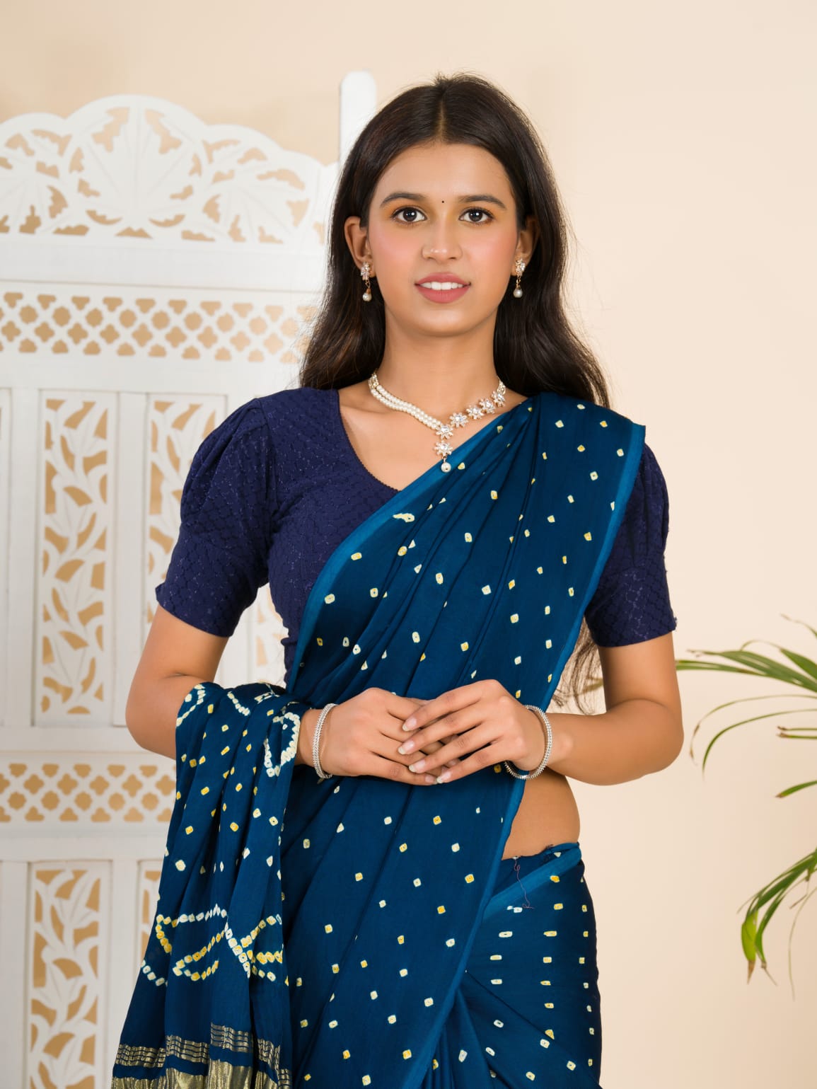 Tanmira Modal Gaji Silk Bandhani Ekdana Handmade Bandhej Saree with Lagdi Patta Pallu RJB