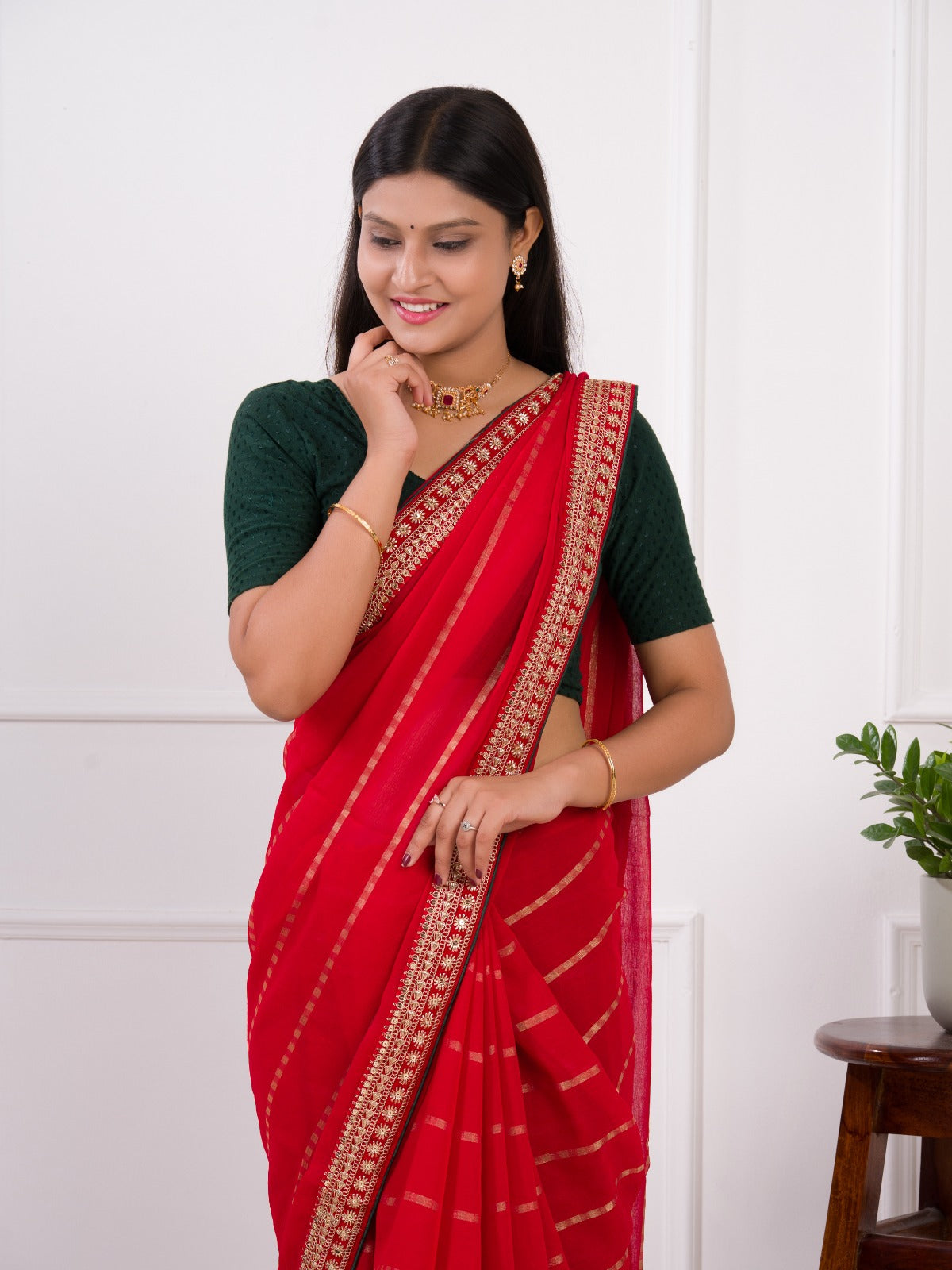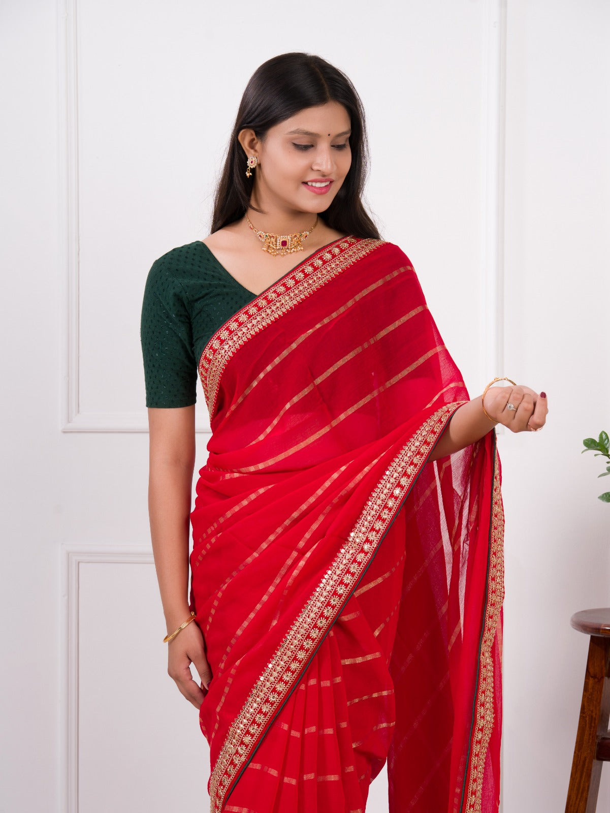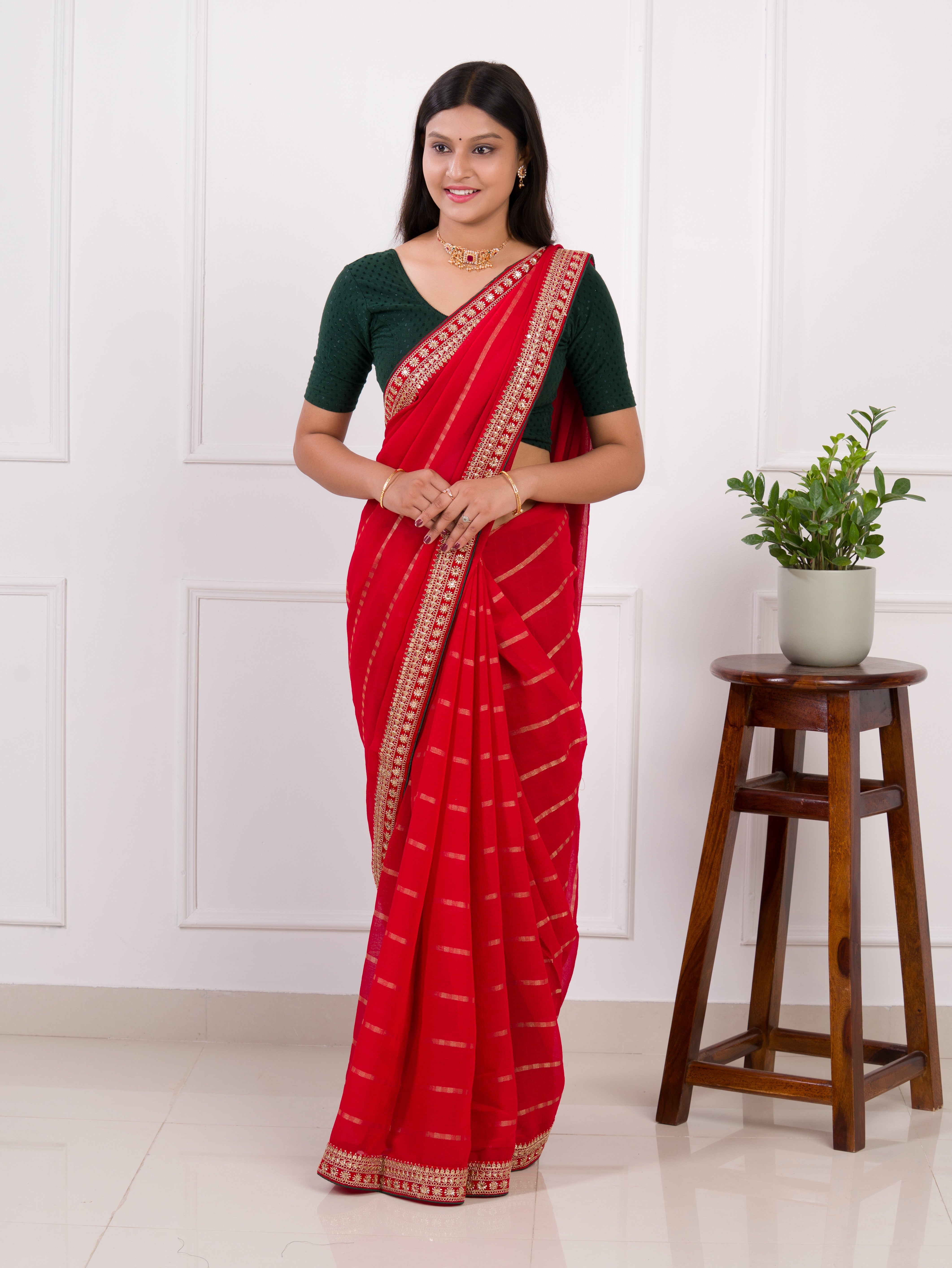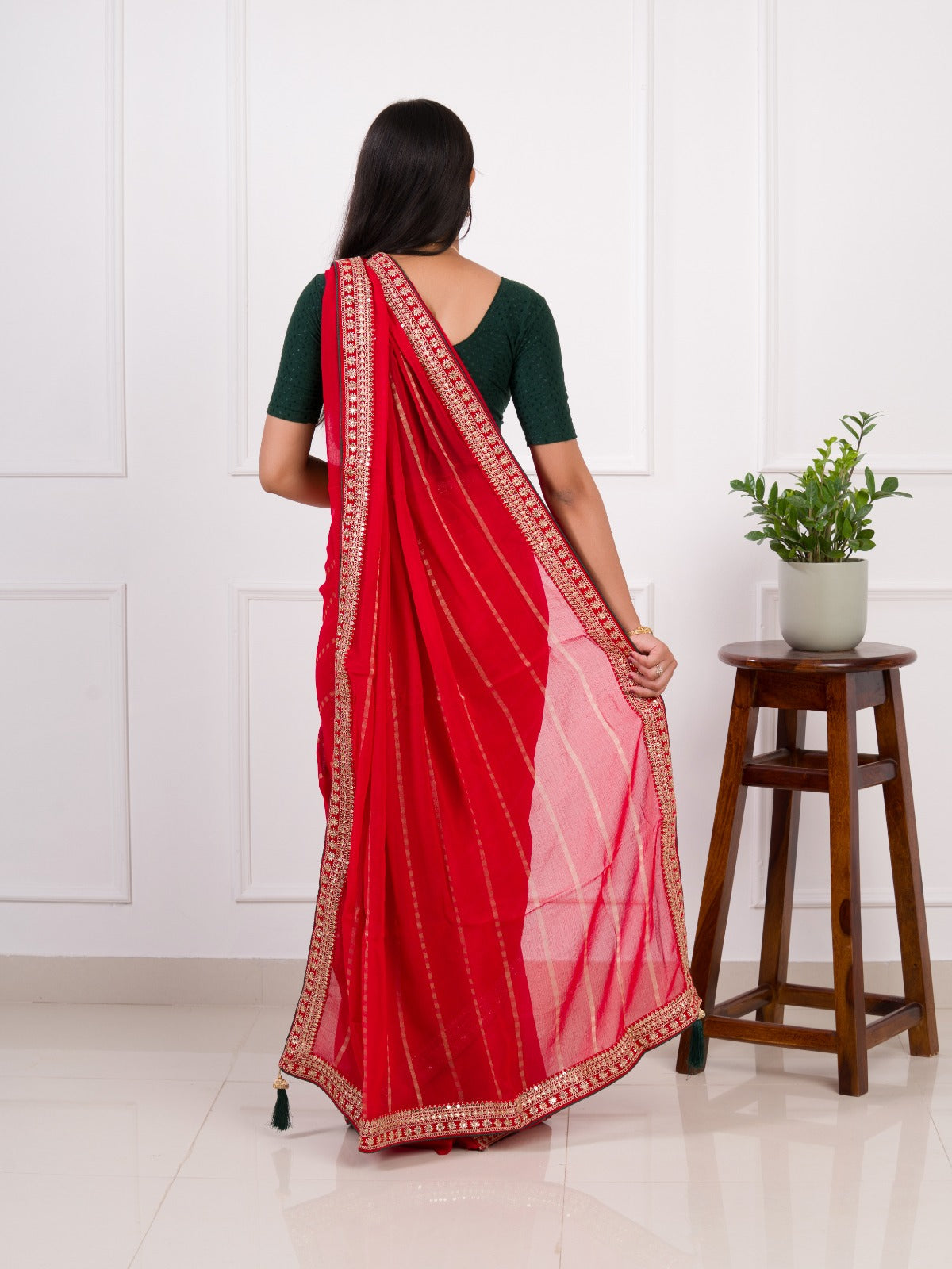 Tanmira Karwachauth Special Pure Georgette Red Wedding Wear Saree