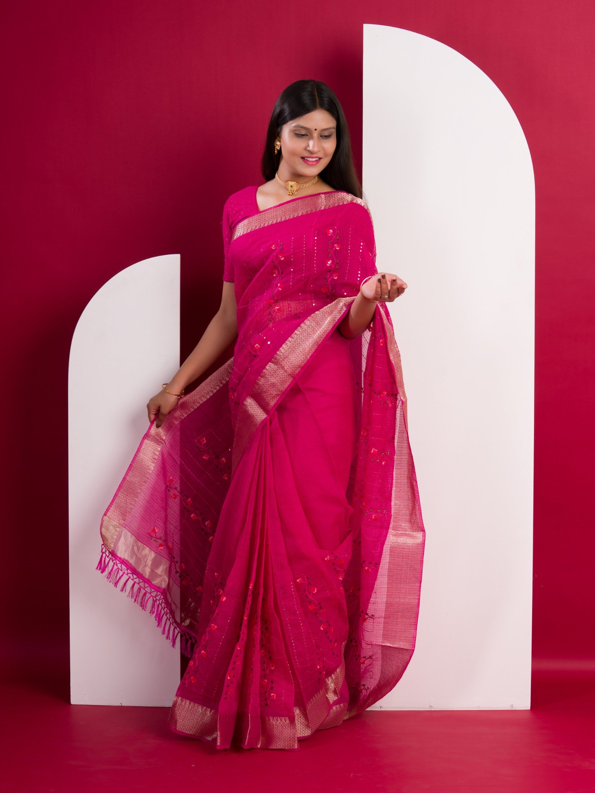 Tanmira Kota Doria Kashida Work Gotapatti Style Bikaneri Saree SNA Rani