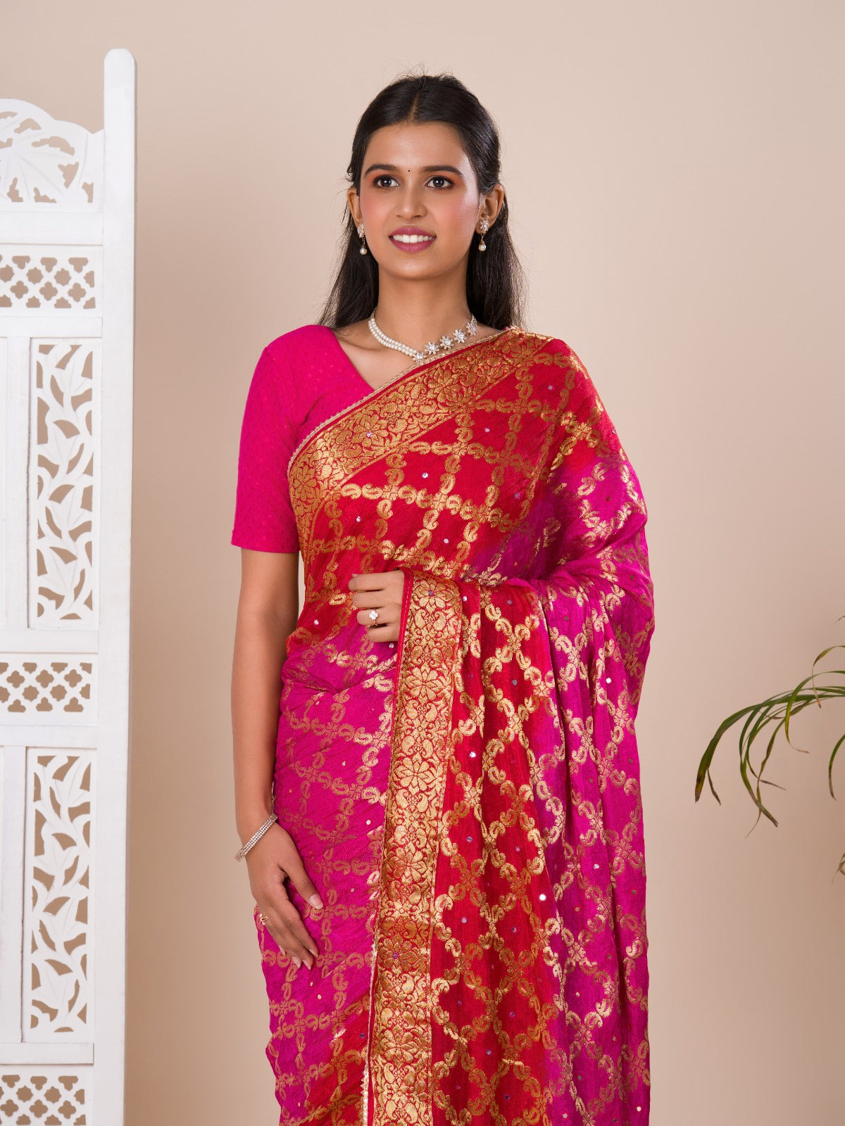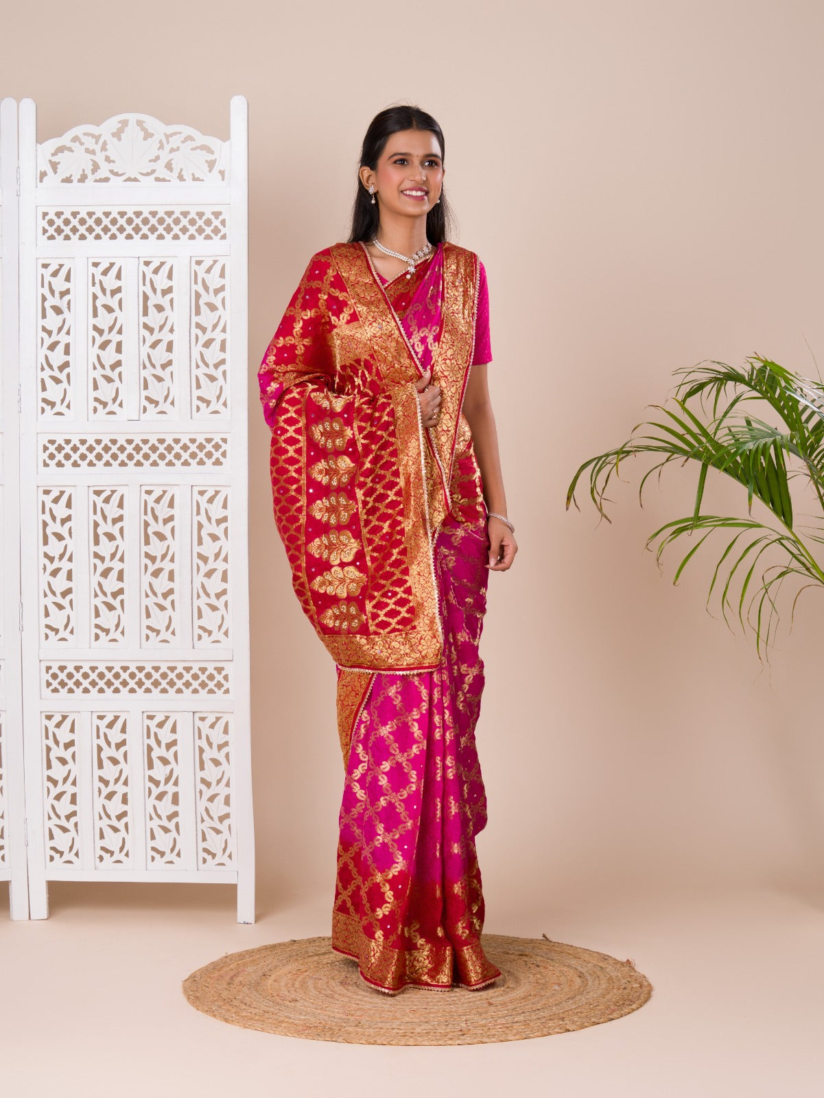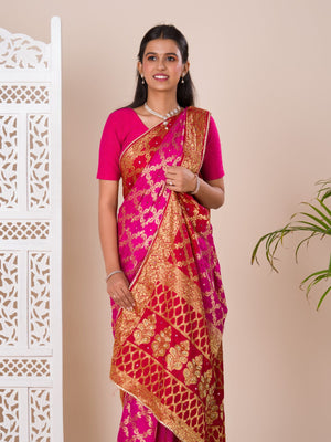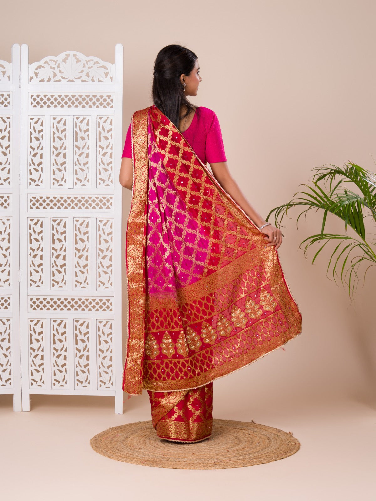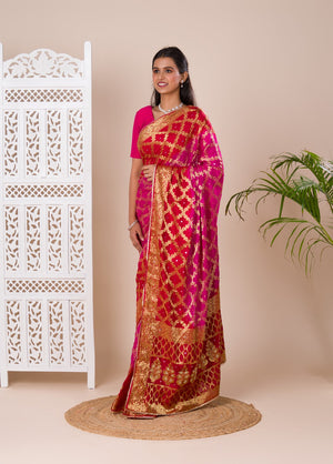 Tanmira Gharchola Banarasi Silk Fabric With Heavy Zari Work Saree KML Rani Red