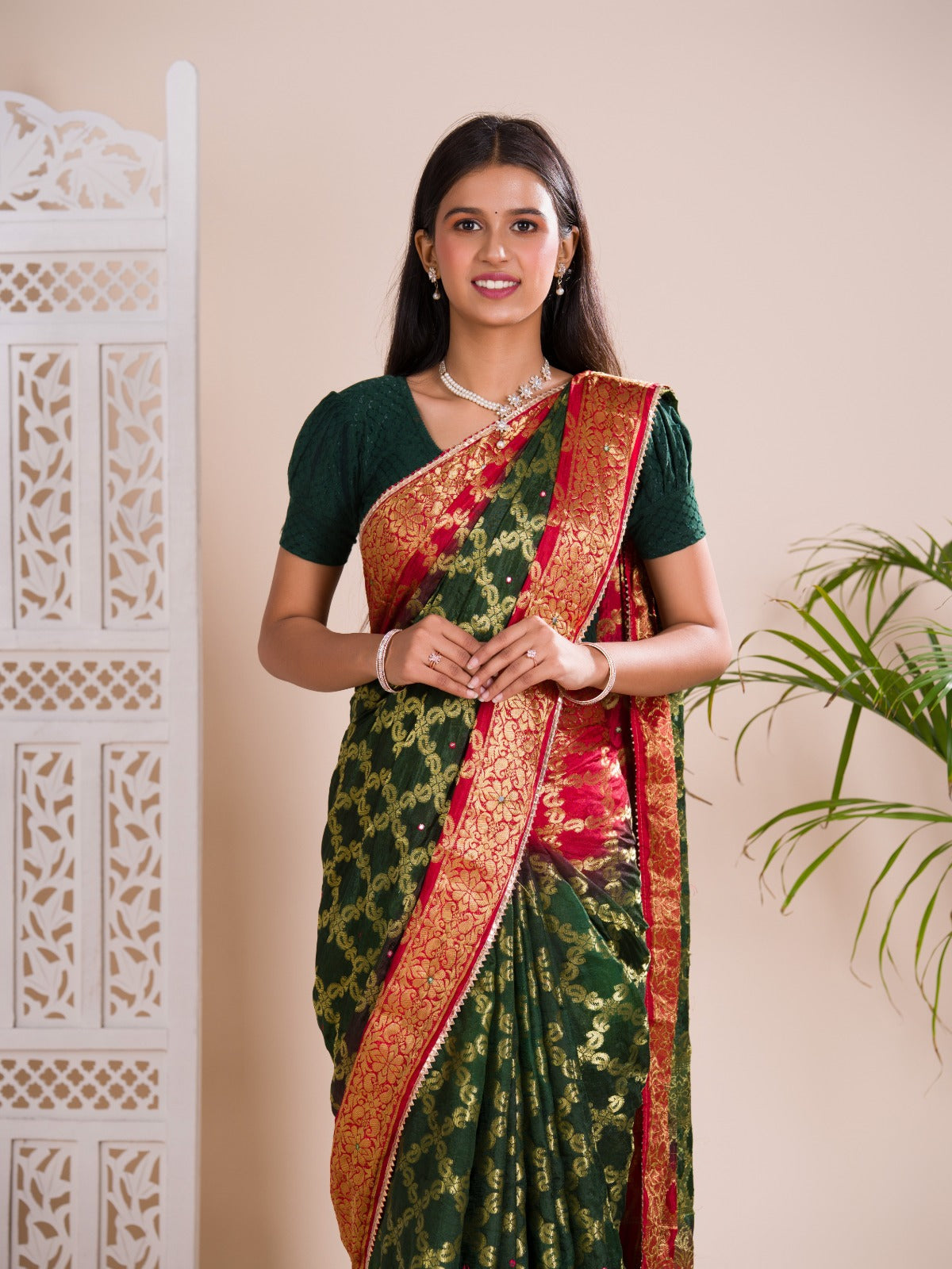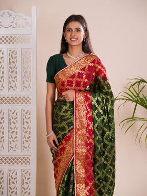 Tanmira Latest Gharchola Banarasi Silk With Heavy Zari Work Saree KML Red Green