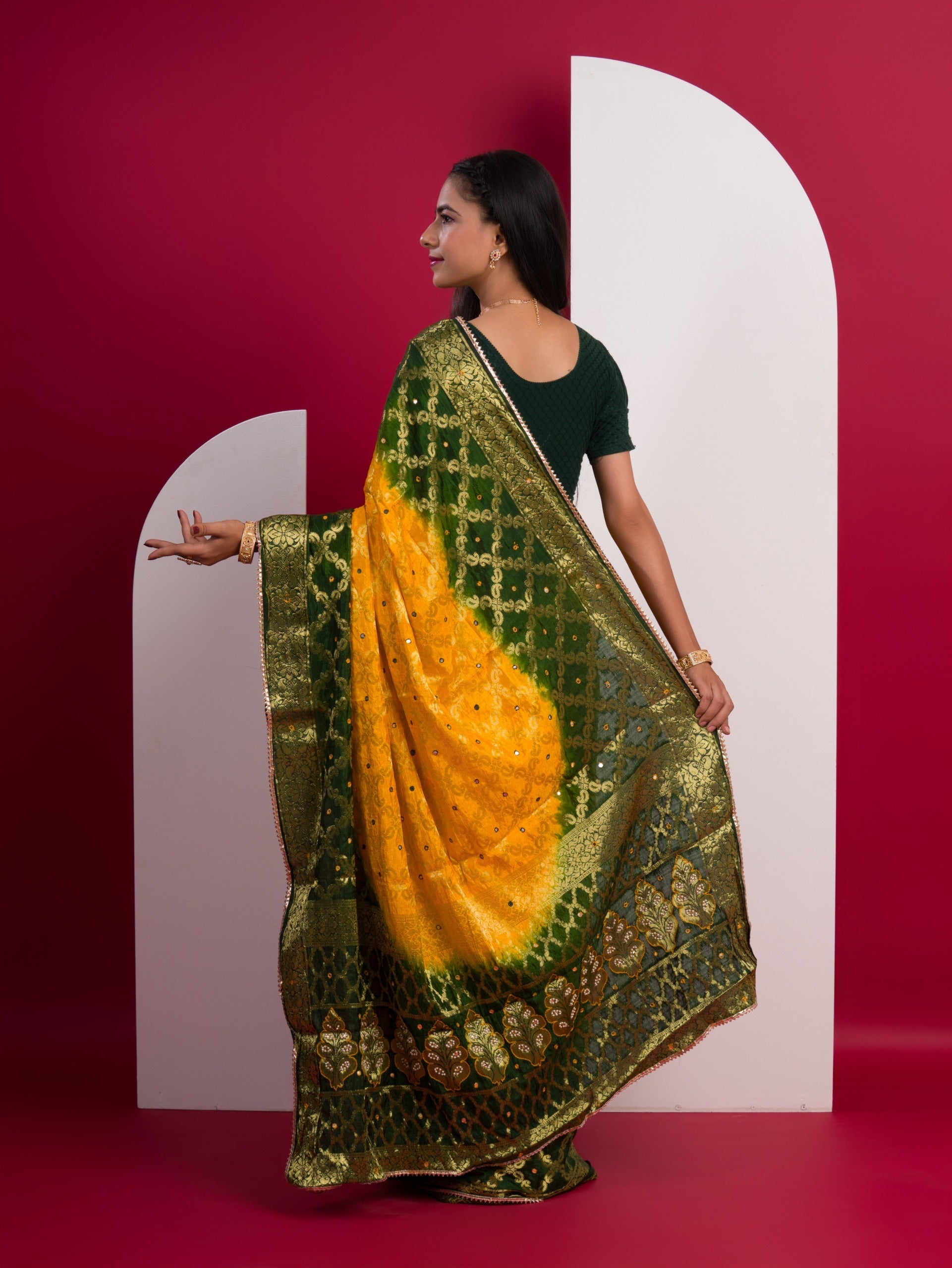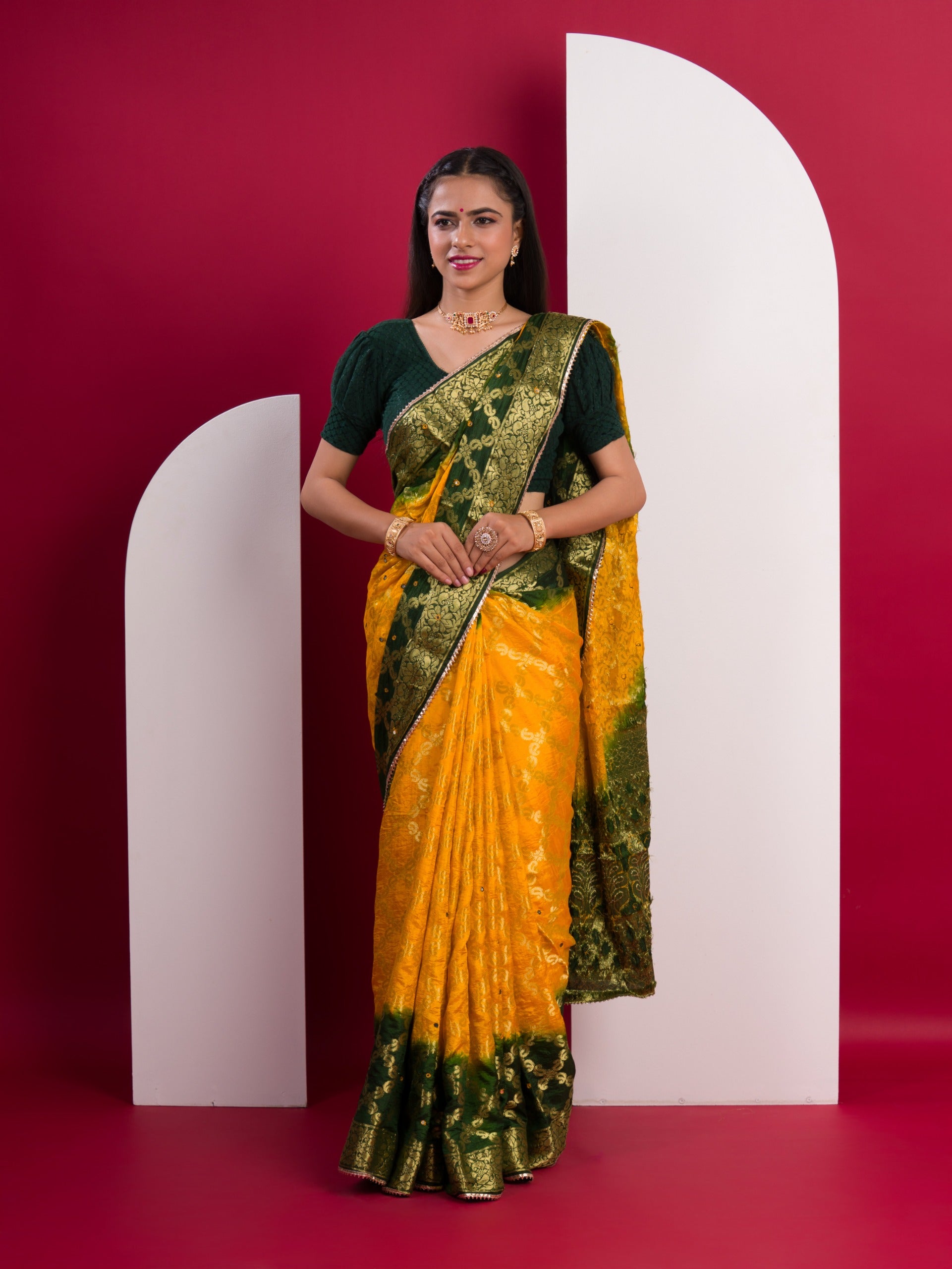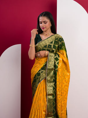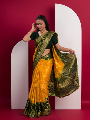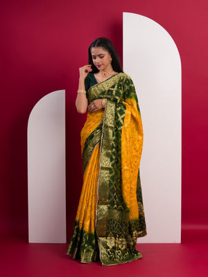 Tanmira Latest Gharchola Banarasi Silk With Heavy Zari Work Saree KML Yellow Green