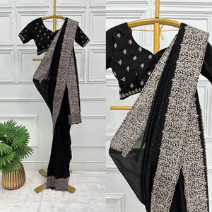 Tanmira Latest Heavy Blooming Vichitra Silk embroidery Saree HM Black
