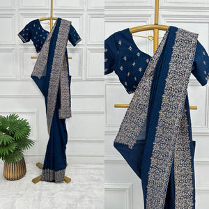 Tanmira Latest Heavy Blooming Vichitra Silk With Embroidery Saree HM Morkanti Blue