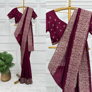 Tanmira Latest Heavy Blooming Vichitra Silk Embroidery Saree HM Wine
