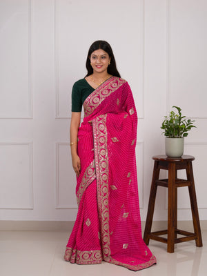 Tanmira Latest Pure Georgette Jaipuri Mothda Leheriya Saree SWA