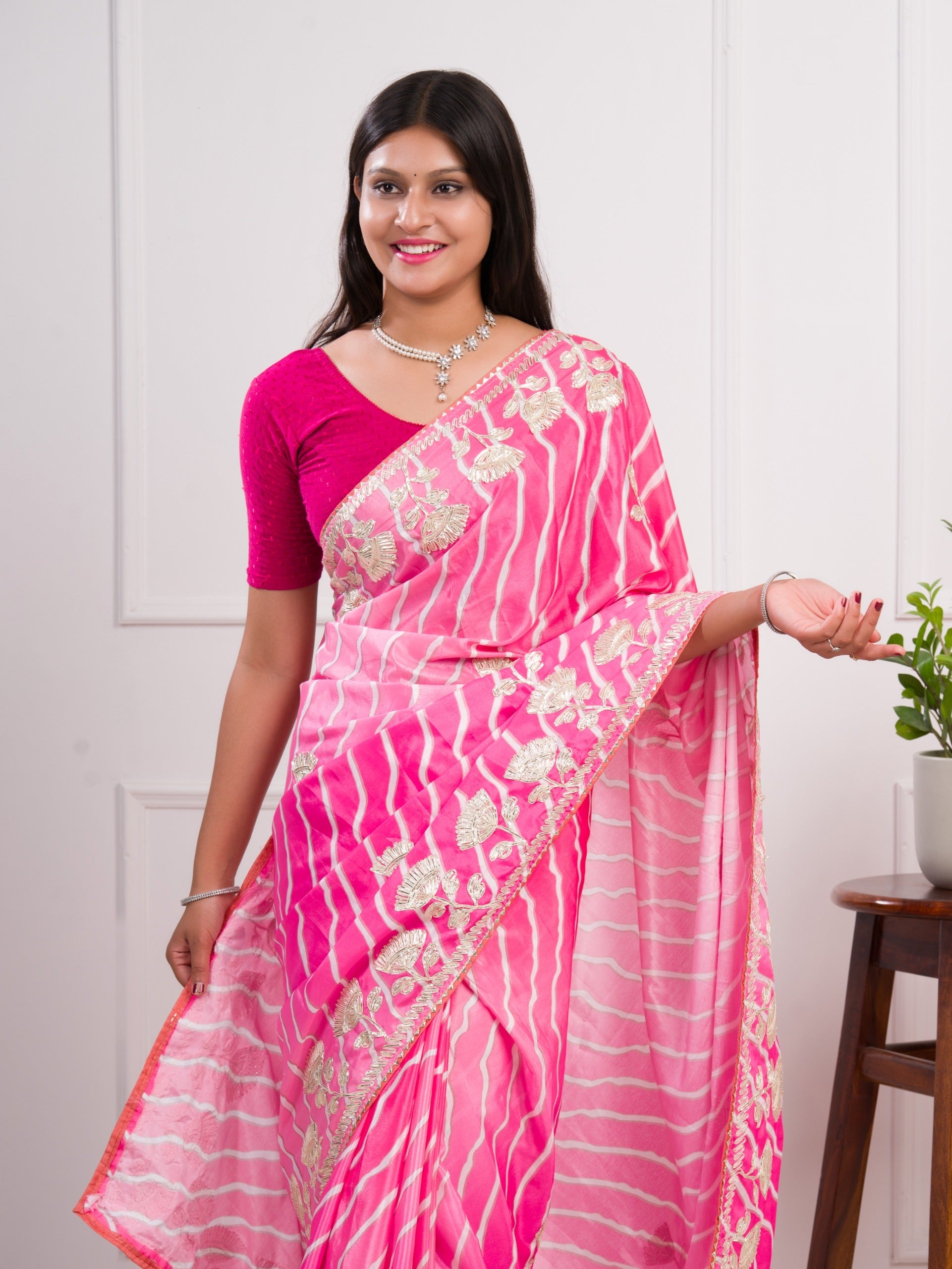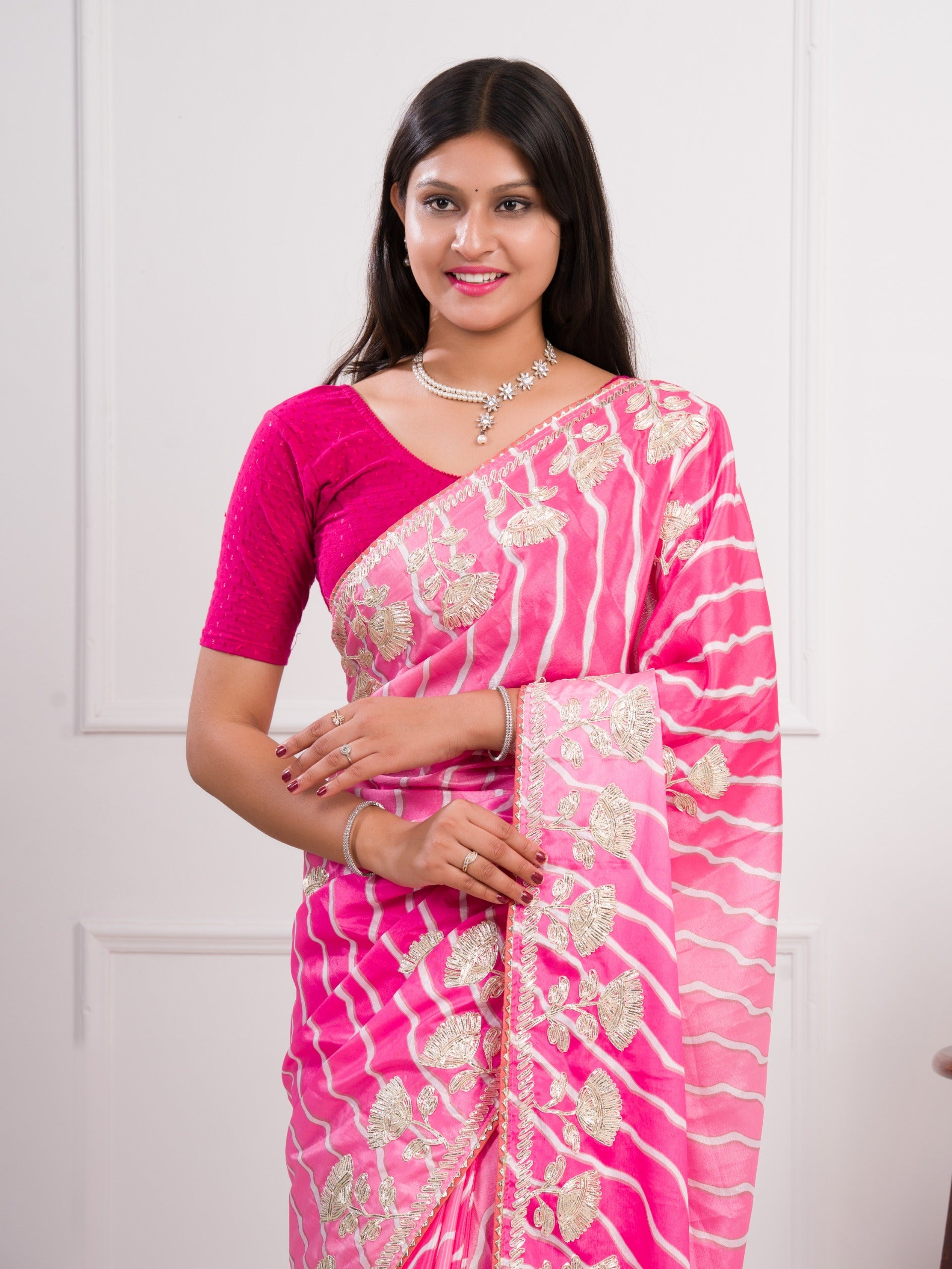 Tanmira Latest Satin Silk Multicolored Tifli Leheriya Gotapatti work Saree 1