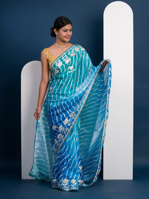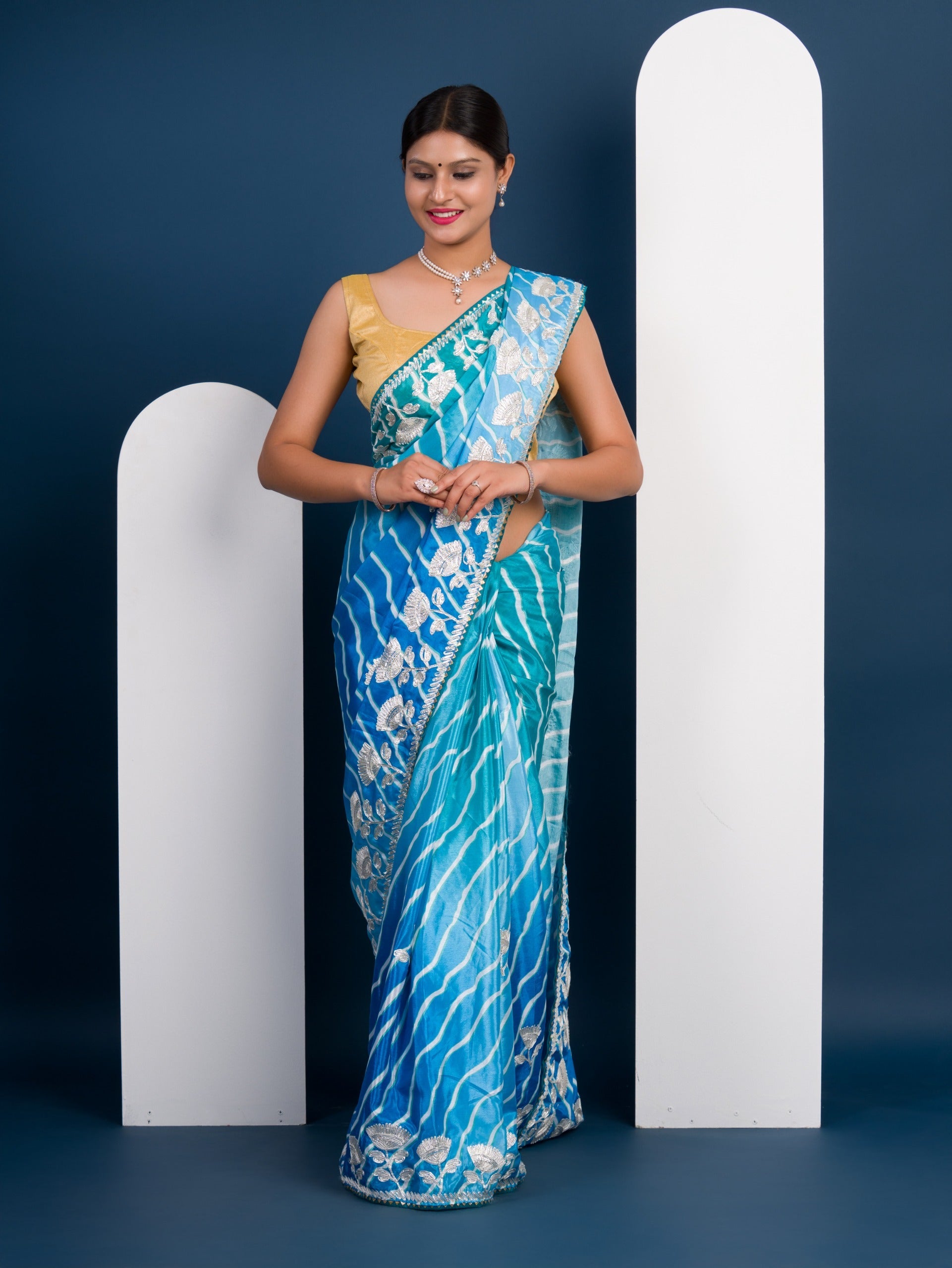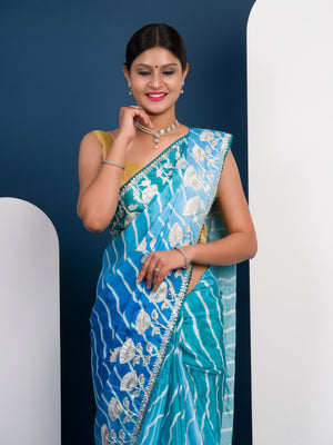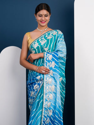 Tanmira Latest Satin Silk Multicolored Tifli Leheriya Gotapatti work Saree 3