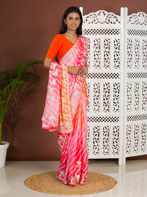 Tanmira Latest Satin Silk Multicolored Tifli Leheriya Gotapatti work Saree 2