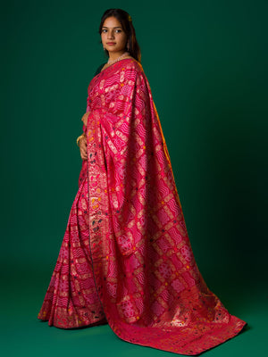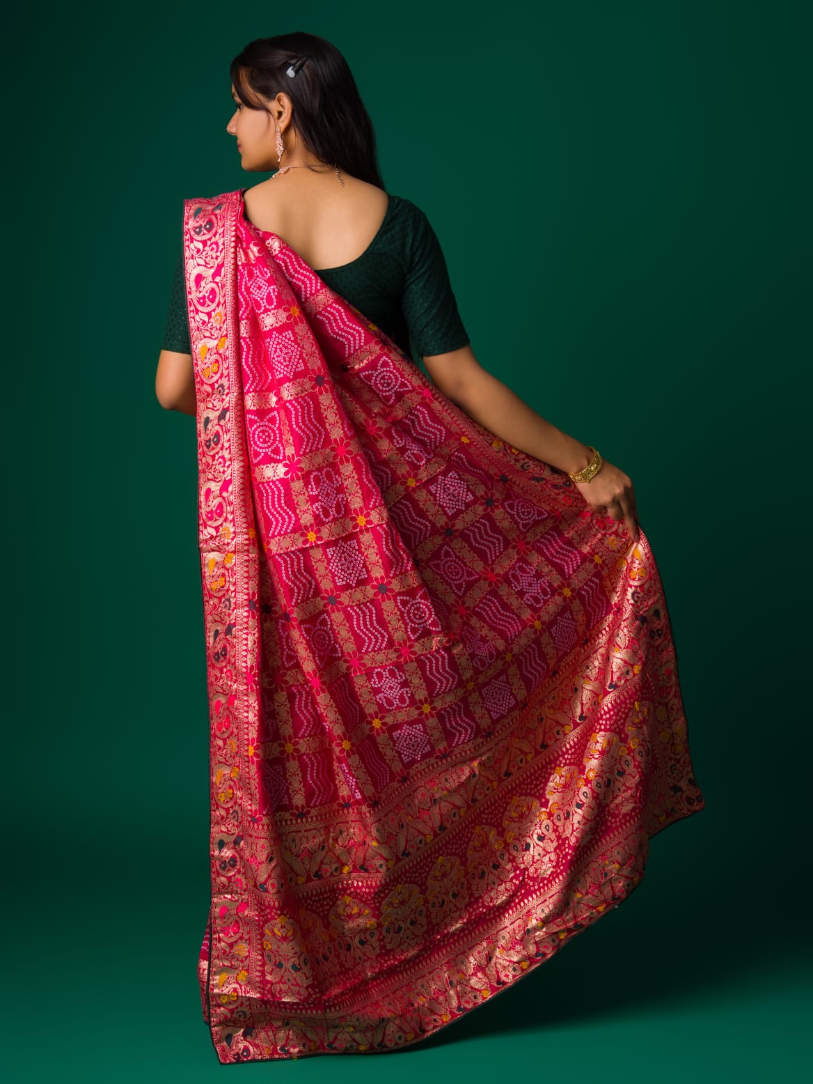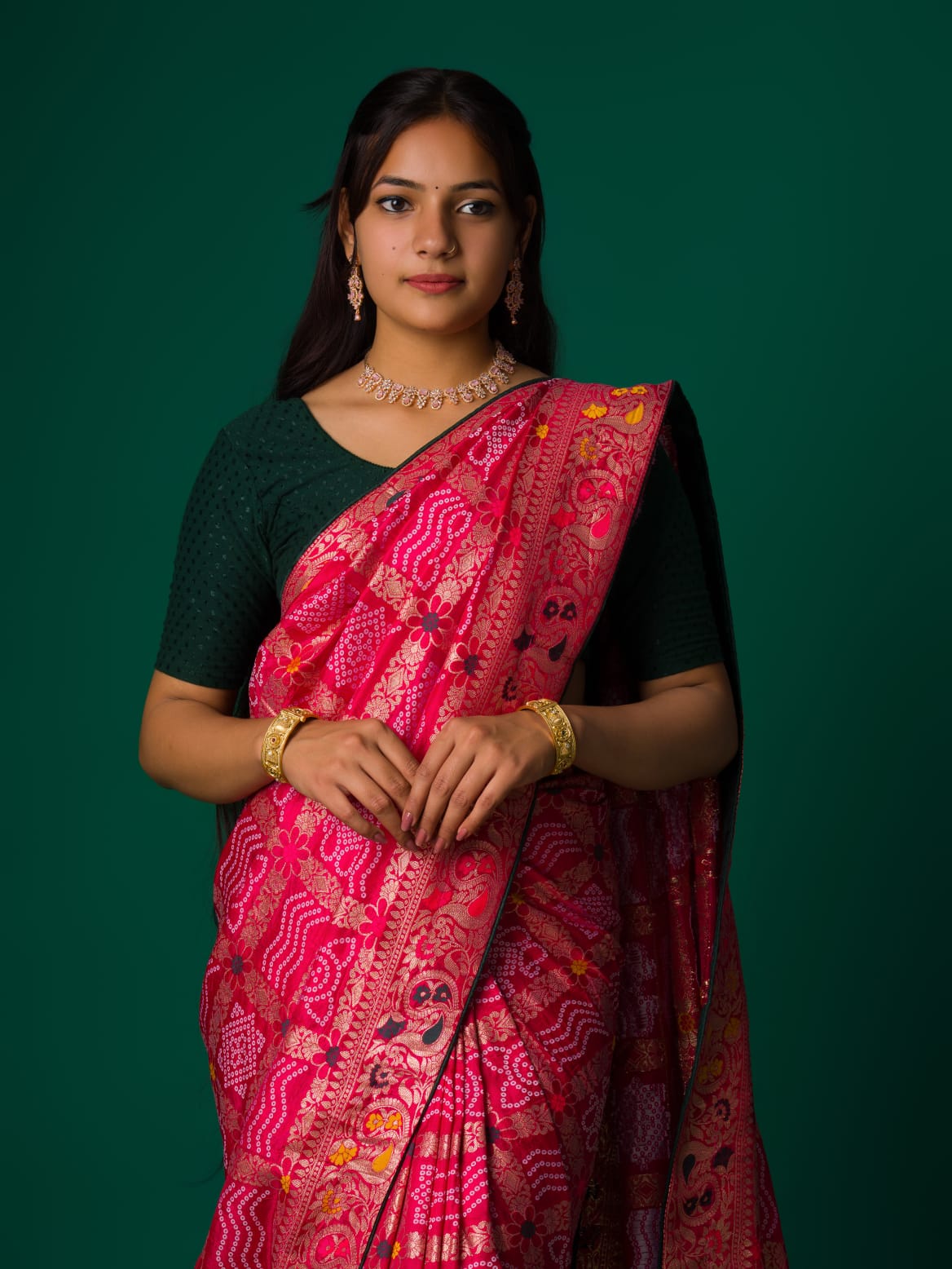 Tanmira Latest Upada Silk Fabric Bandhani Ghatchola Meenakari Banarasi Saree DC