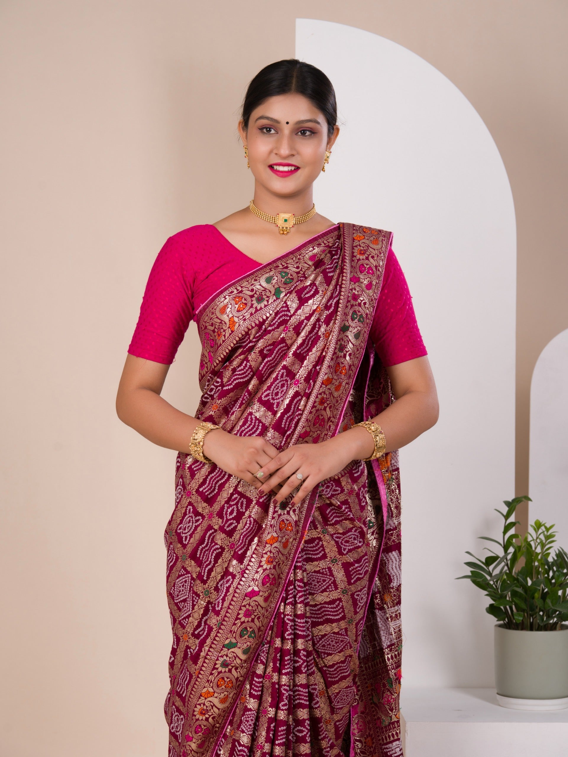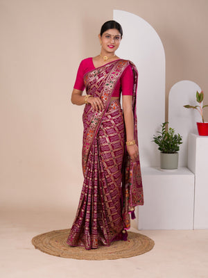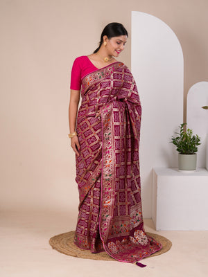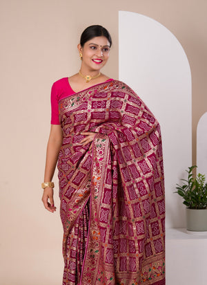 Tanmira Latest Upada Silk Bandhani Ghatchola Meenakari Banarasi Saree SWA