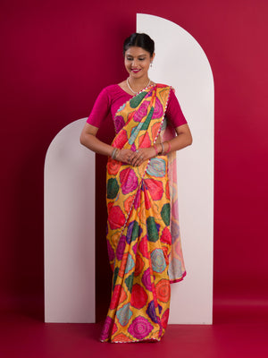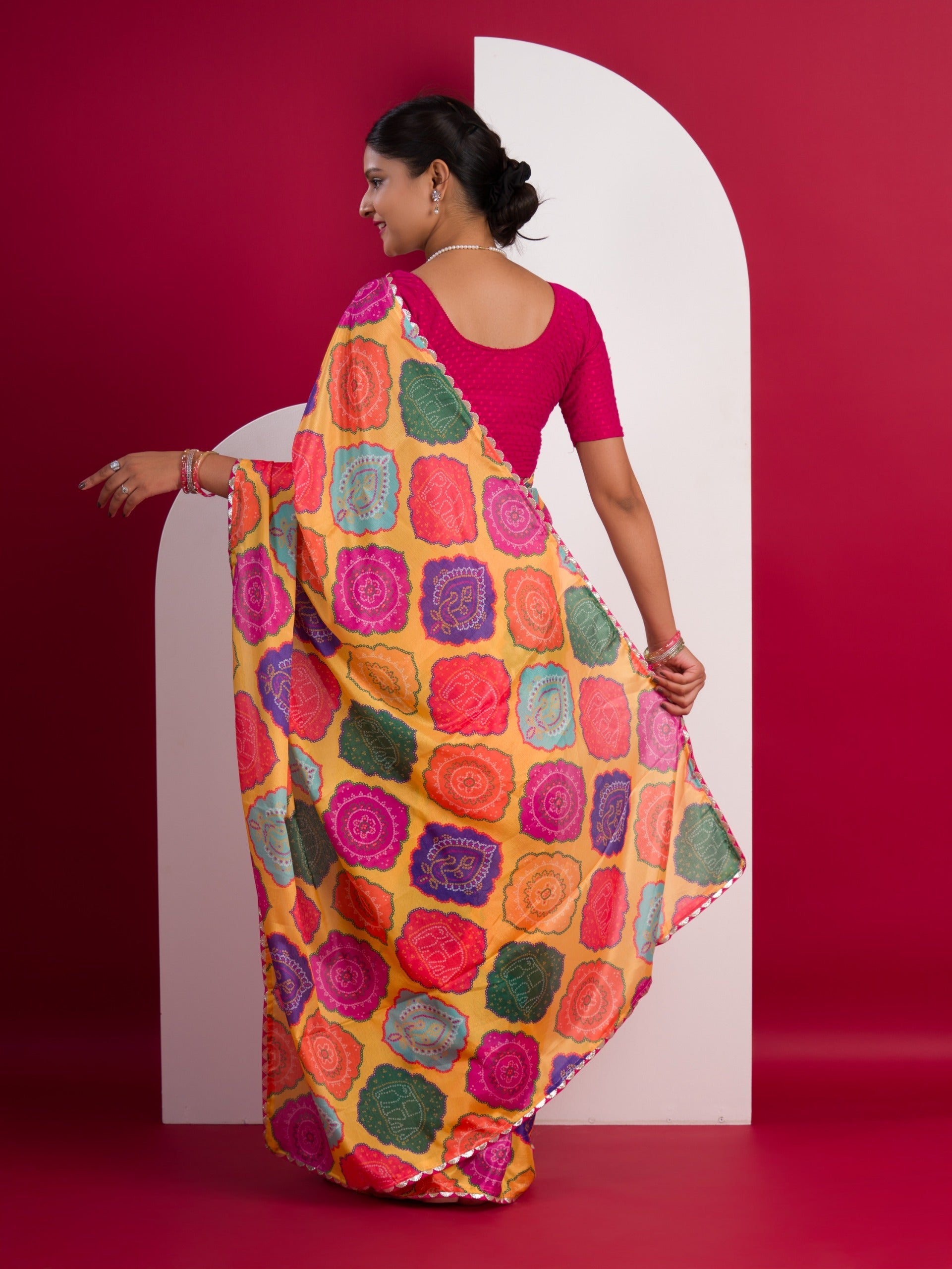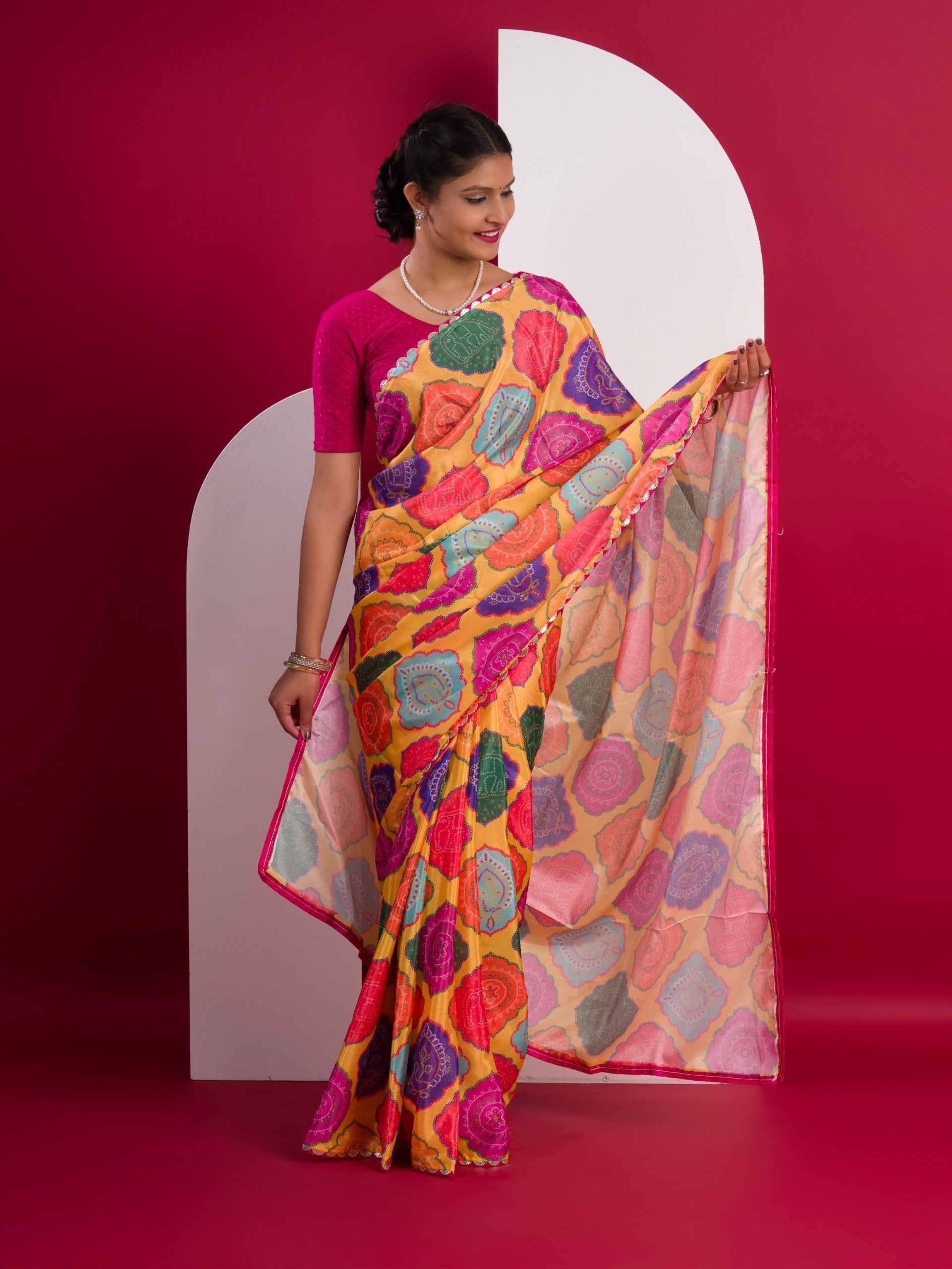 Tanmira New Arrival Crape Bandhani Multicolor Saree with Gotapatti Border