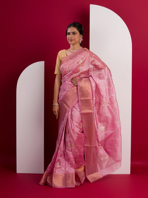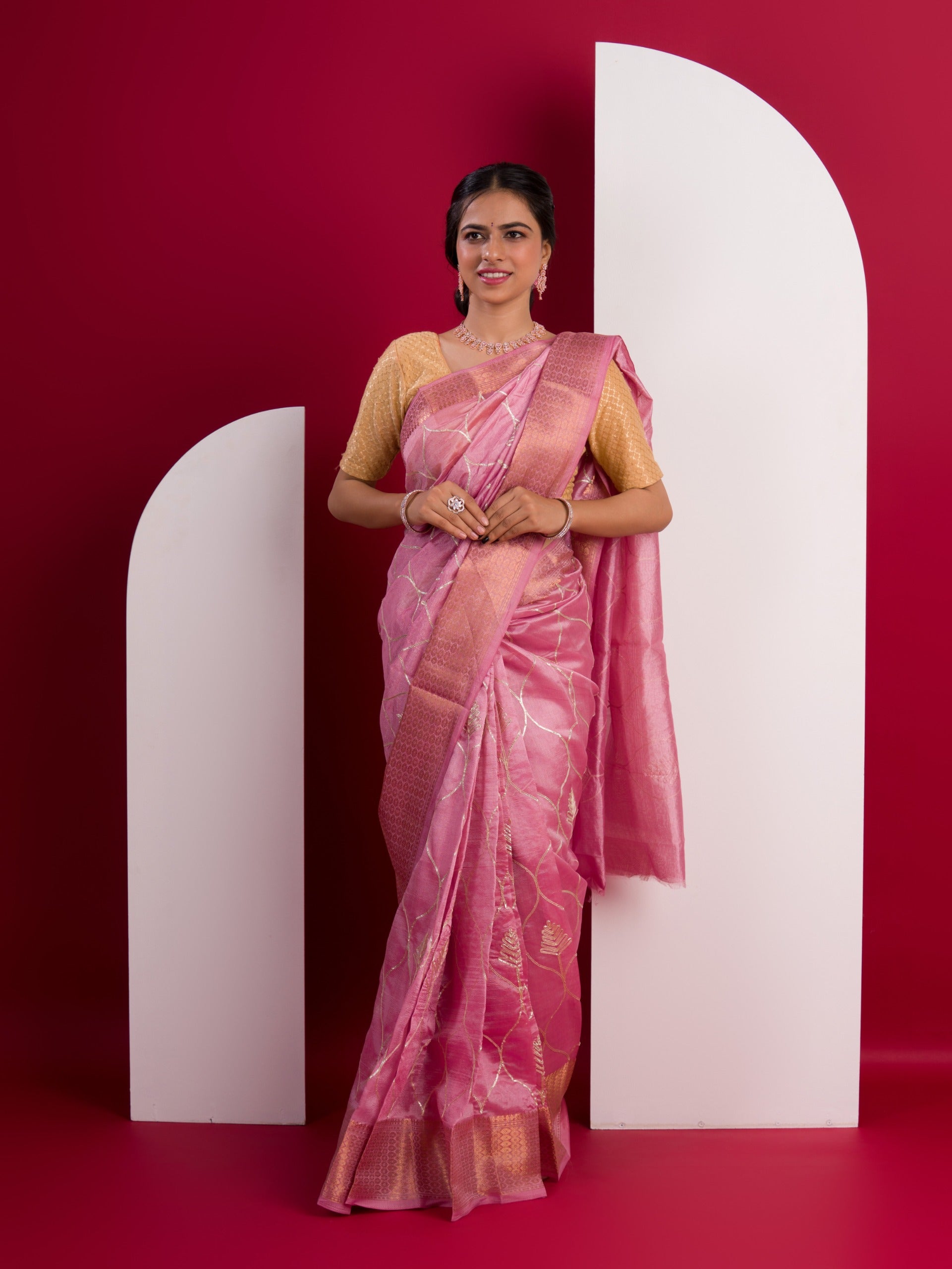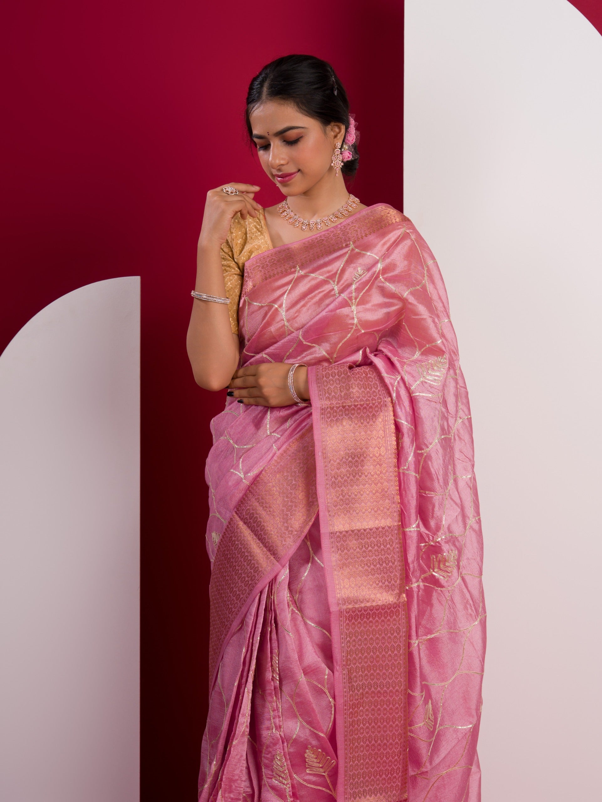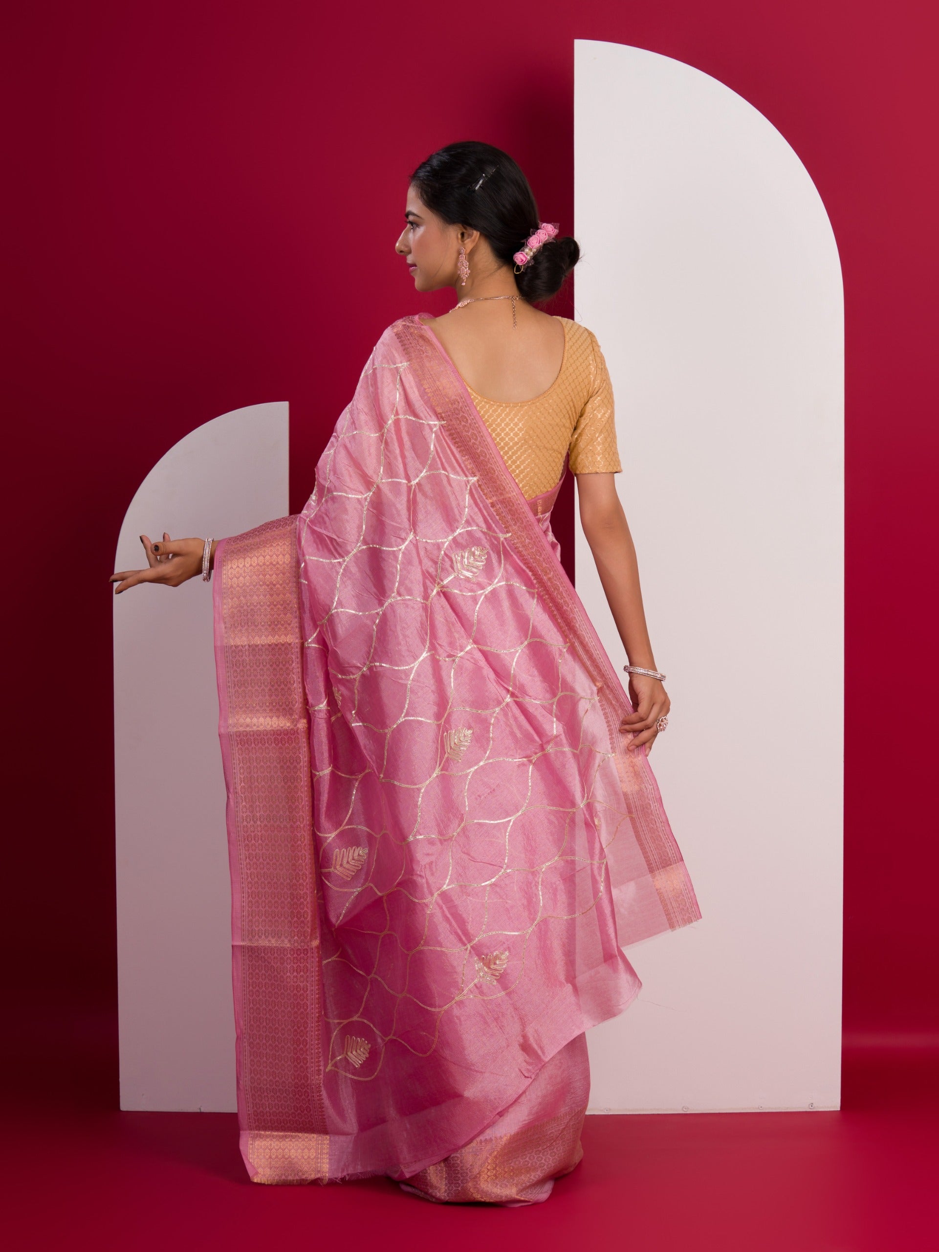 Tanmira New Cotton Silk Gota patti Work Saree Pink