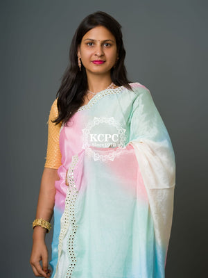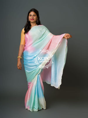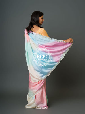 Tanmira New Crape Silk Multicolor Tie Dye Cutwork Mirror kashida saree