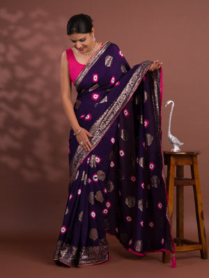 Tanmira New Dola Silk Bandhani Saree with Banarasi Upada Zari Weaving PF