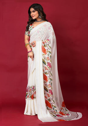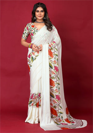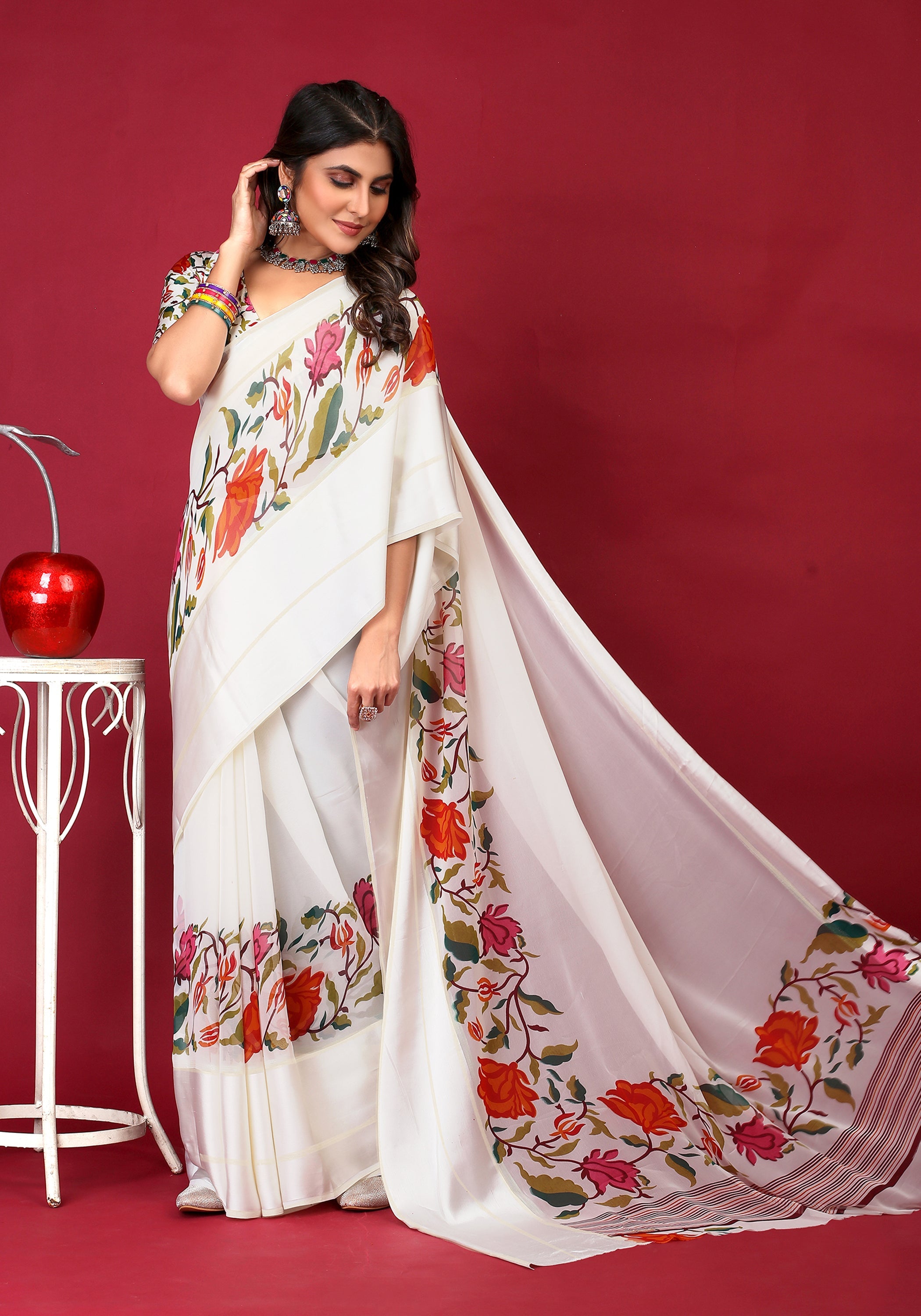 Tanmira Pure chiffon Satin Patta floral print designer aree With Blouse STR