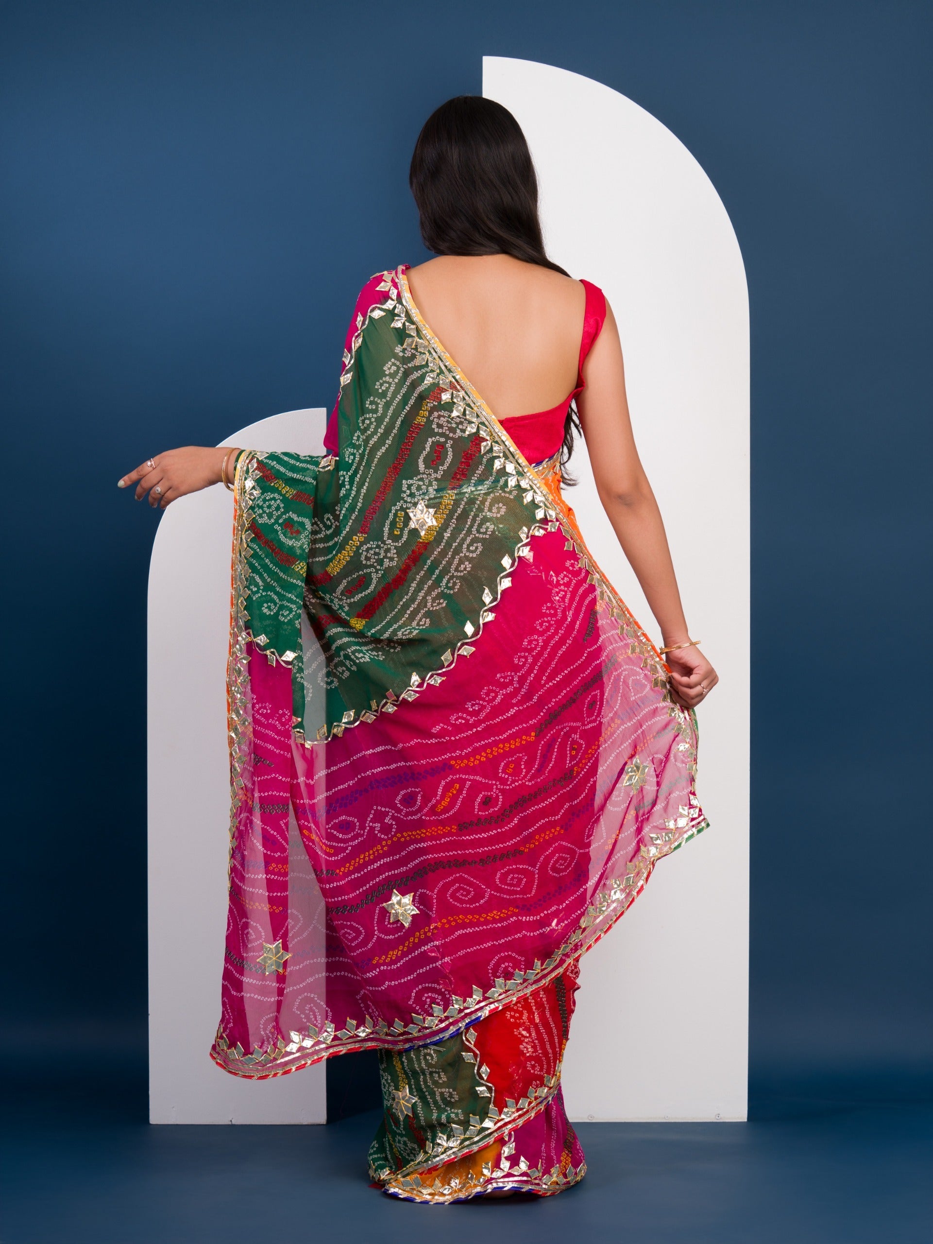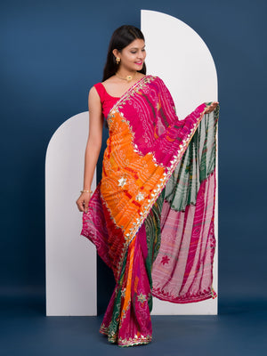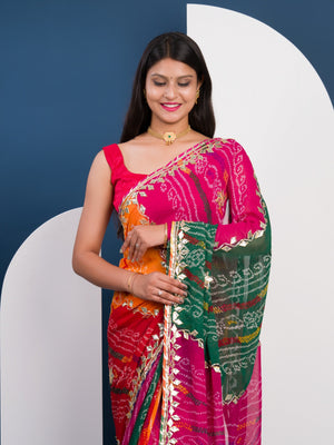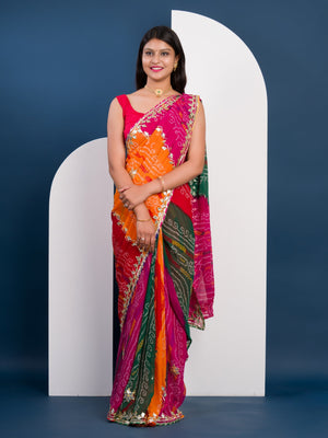 Tanmira Pure Georgette Multi Colour Leheriya Bandhej Gotapatti Work Saree MHS