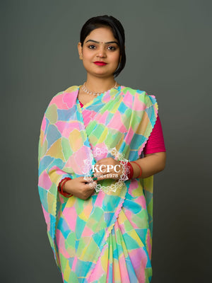 Tanmira Pure Georgette Multi Colour Saree With Siroski Border Saree