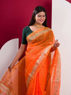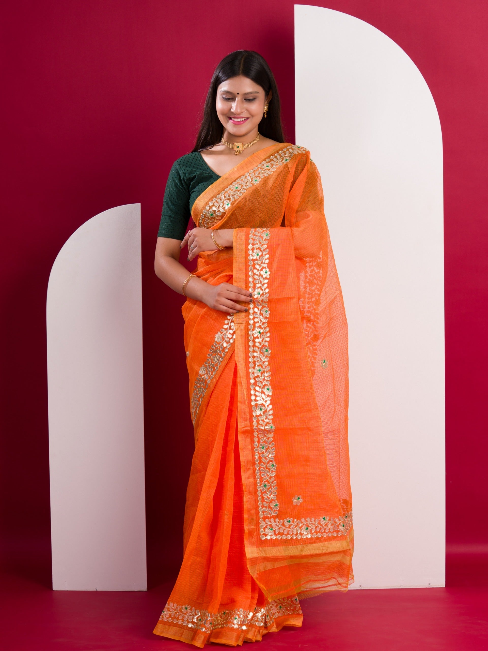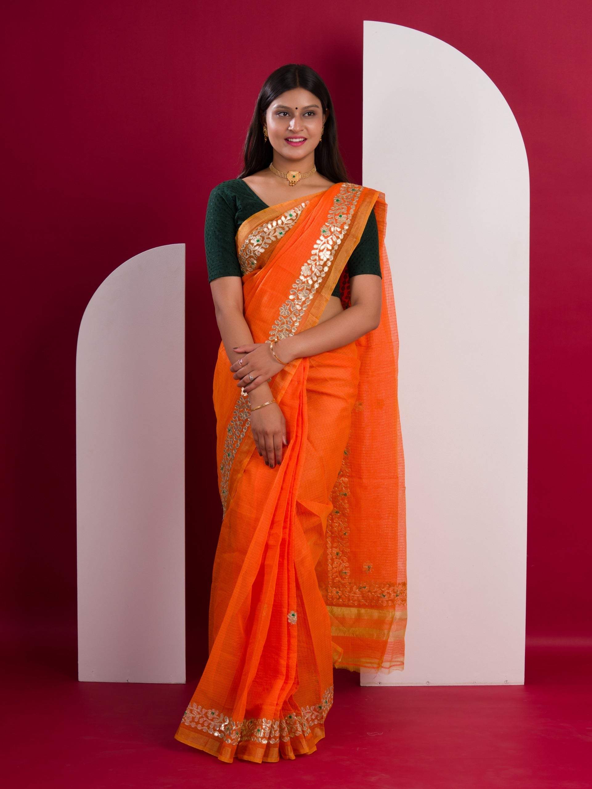 Tanmira Pure Kota doria cotton with Gota patti work saree Orange