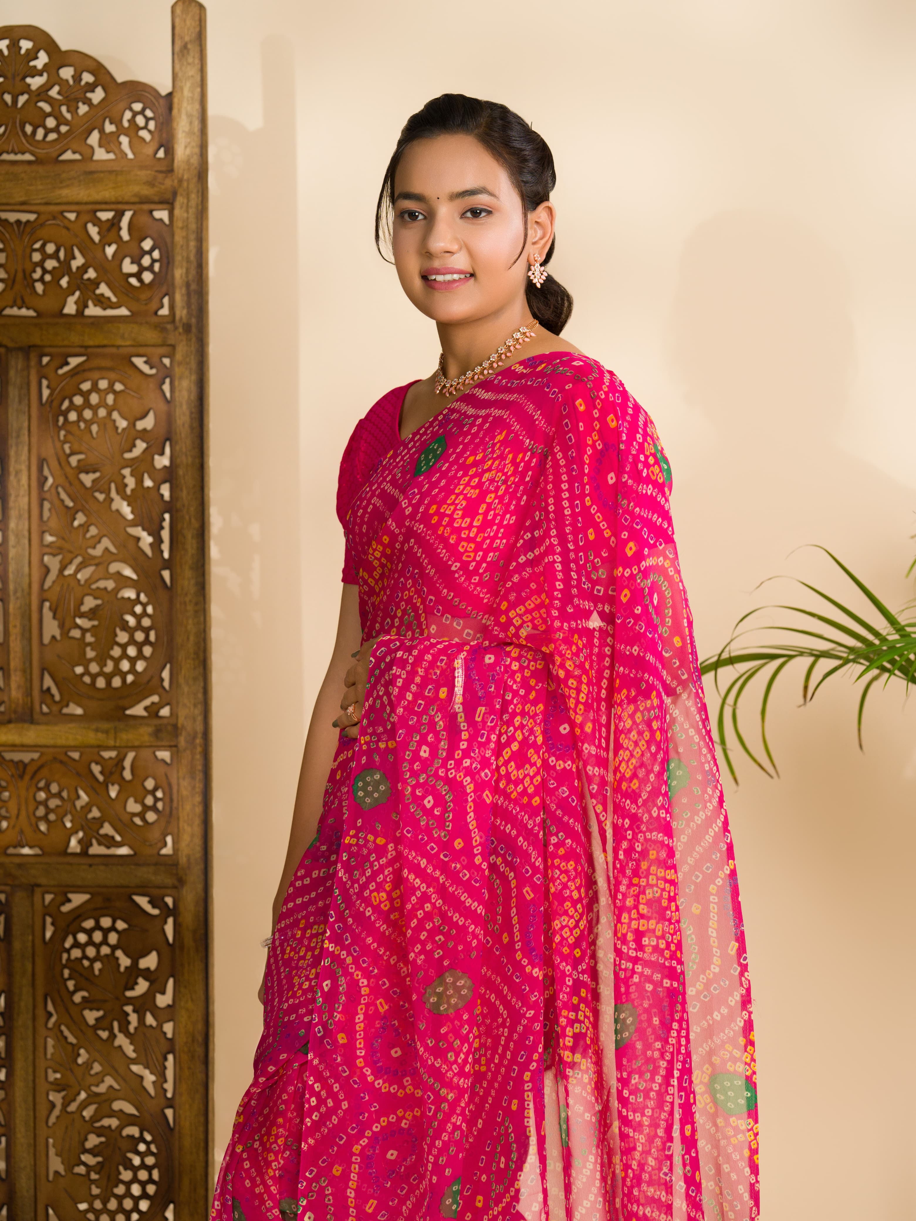 Tanmira Rajwadi Style Royal Georgette Bandhani Sarees Rani