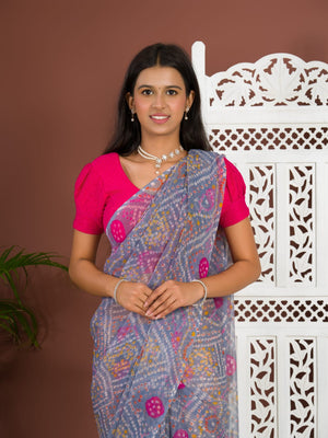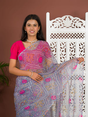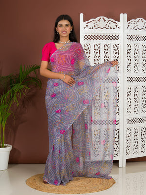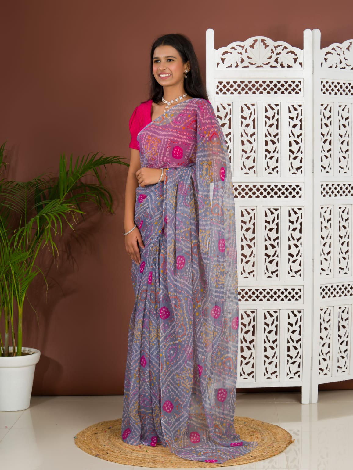 Tanmira Rajwadi Style Royal Georgette Bandhani Sarees Grey