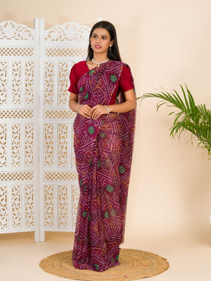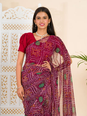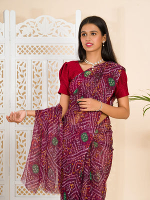 Tanmira Rajwadi Style Royal Georgette Bandhani Sarees Wine