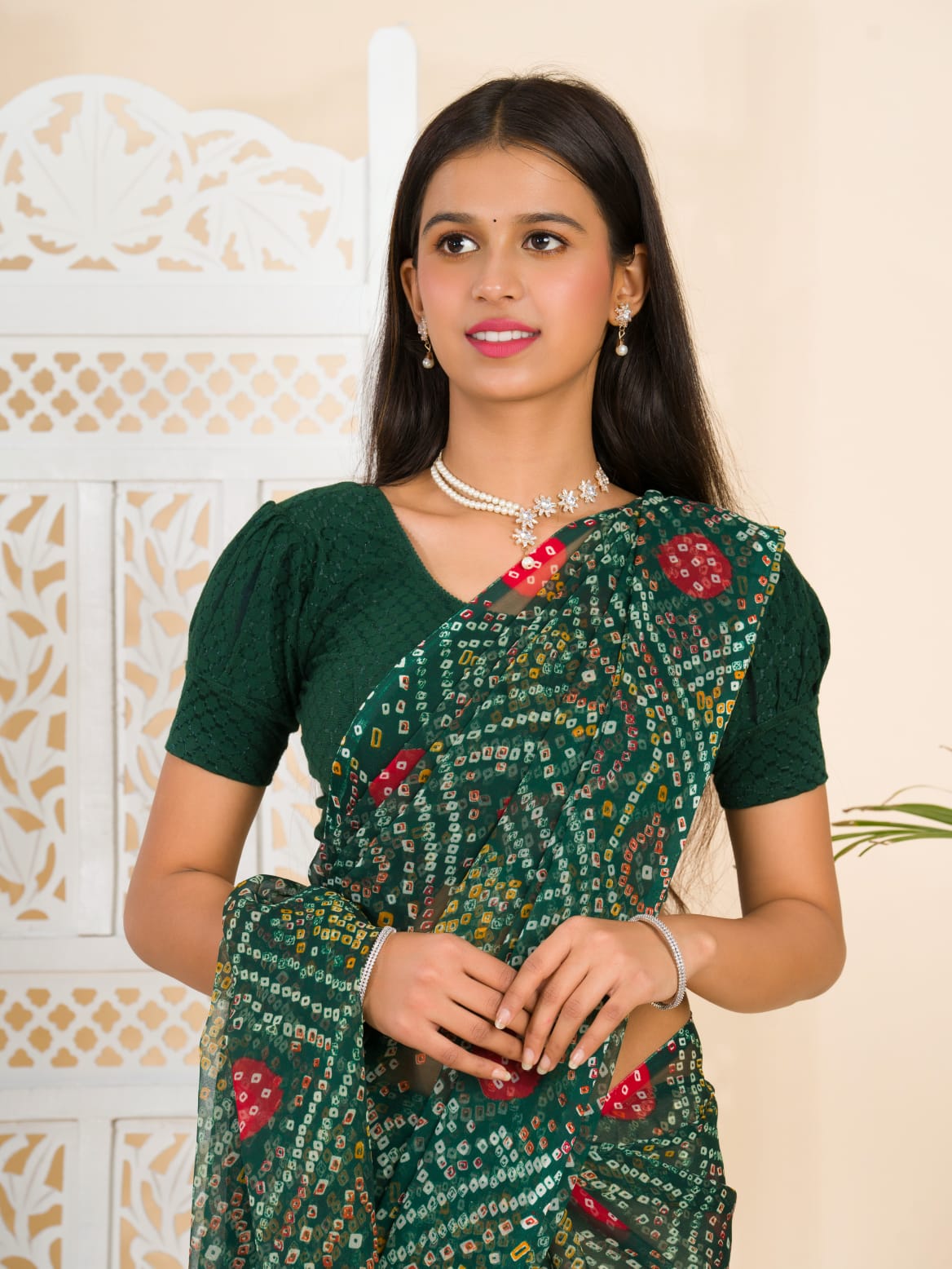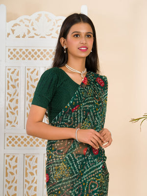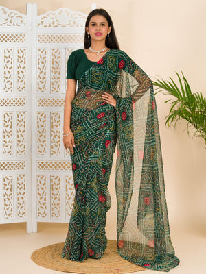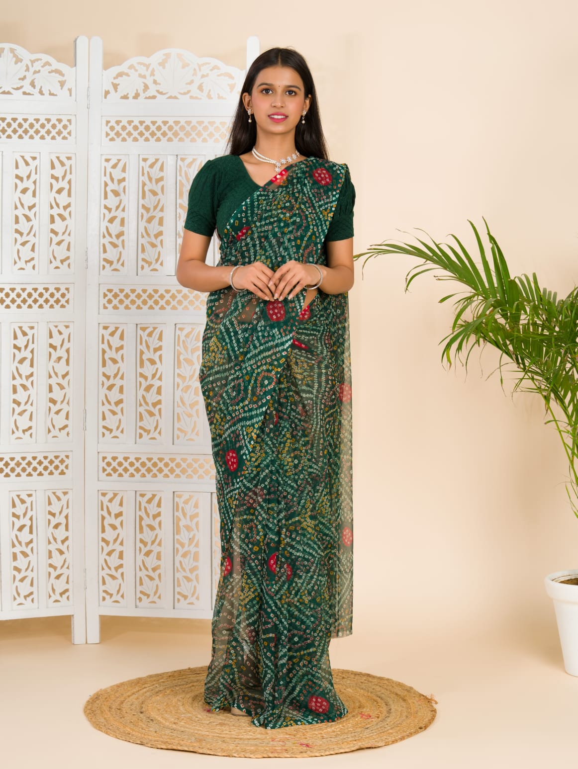 Tanmira Rajwadi Style Royal Georgette Bandhani Sarees Bottle Green