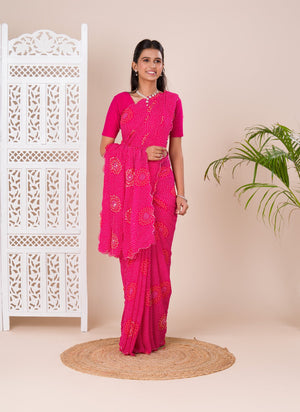 Tanmira Beautiful Bandhani Chiffon Aari Tari Work Saree SWA