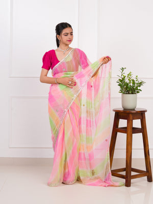 Tanmira Beautiful Comfortable Chiffon Leheriya Saree with Gota Patti Work AMT