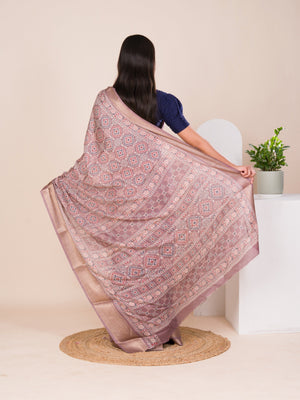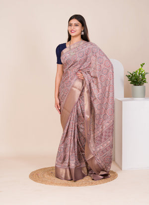 Tanmira Beautiful Cotton silk Ajrakh style With Ajrakh HandPrint Work Saree STL