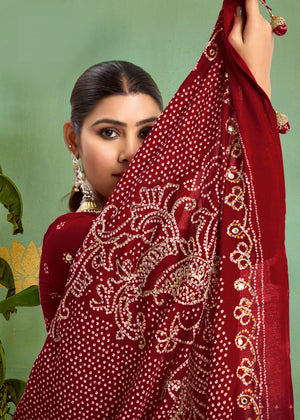 Tanmira Beautiful Dola silk Bandhani Print Gotapatti Aaritari work Saree Green GAN