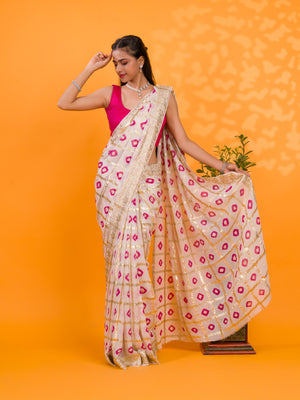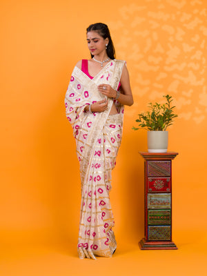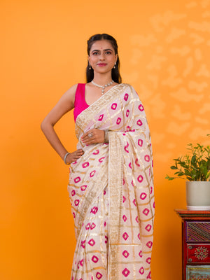 Tanmira Casual Wear Bandhani Saree With Zari Lines CHAND