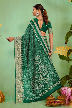 Tanmira Dola silk Bandhani Print Gotapatti Aaritari work Saree Green GAN