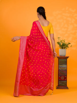 Tanmira Latest Chinon Silk Bandhani with Zari Border Saree Chand