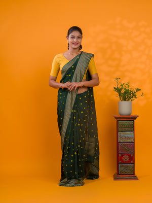 Tanmira Latest Chinon Silk Bandhani with Zari Border Saree Chand