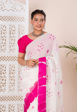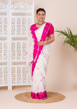 Tanmira New Pure Georgette Gulti Bandhej Satin Patta Border Saree With Blouse RTK