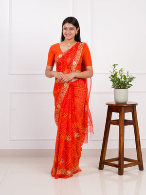 Tanmira latest Royal Bandhani Georgette Saree With Golden Embellishments Work JAY