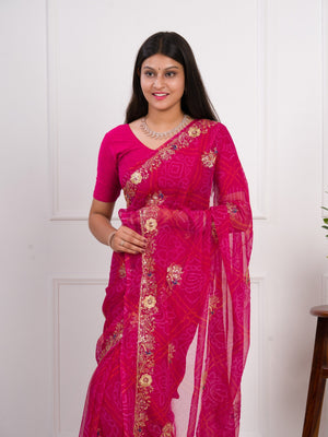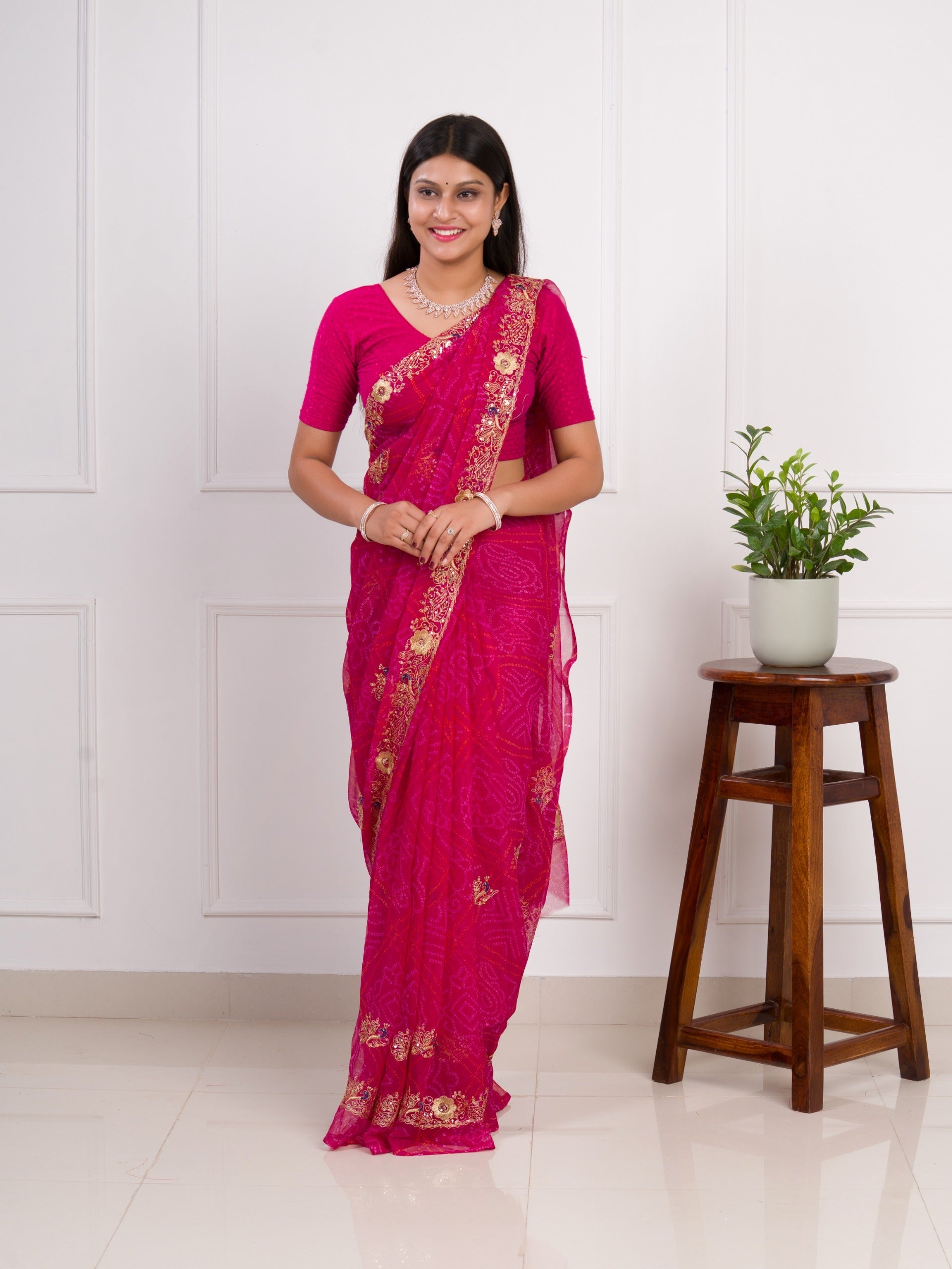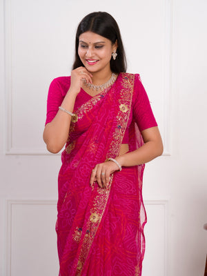 Tanmira latest Royal Pink Bandhani Georgette Saree with Golden Embellishments JAY