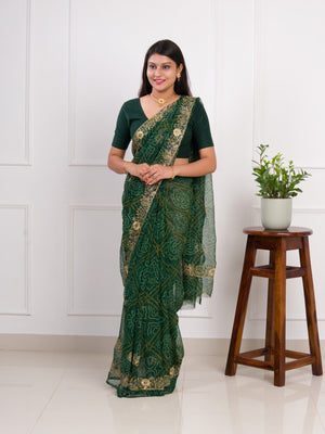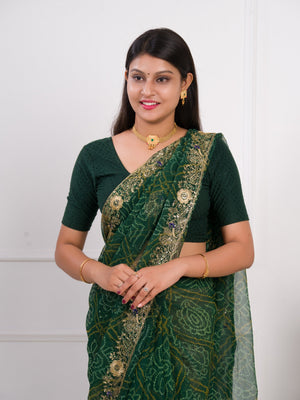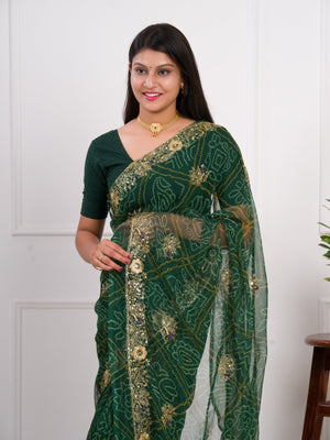 Tanmira latest Royal Bandhani Georgette Saree With Golden Embellishments JAY