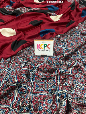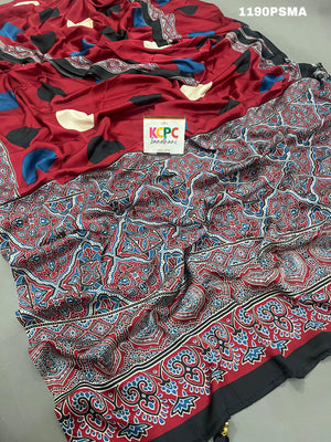 Tanmira Launching New Modal Silk Ajrakh Print Saree With Blouse,APL