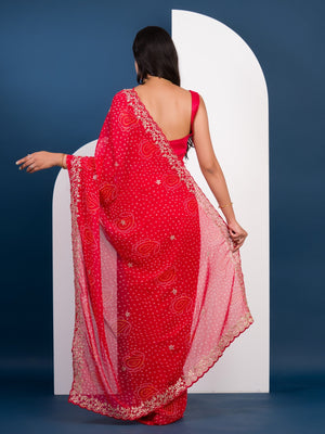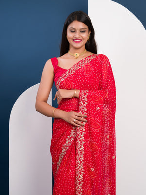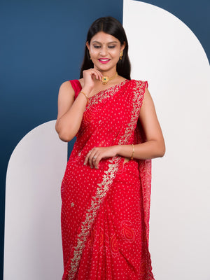 Tanmira Launching New Pure Mos Chiffon Handmade Pitta Aari Work Bandhani Saree SWA