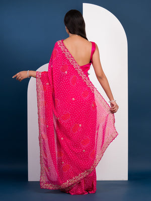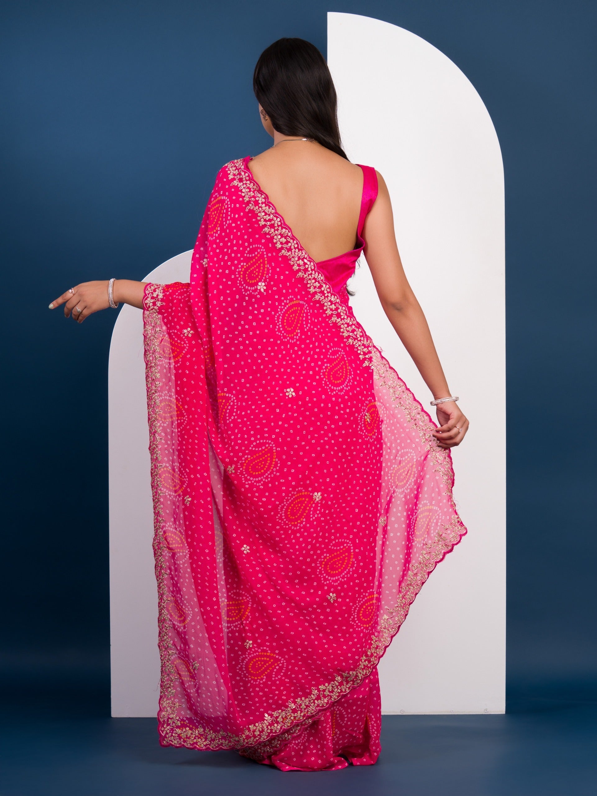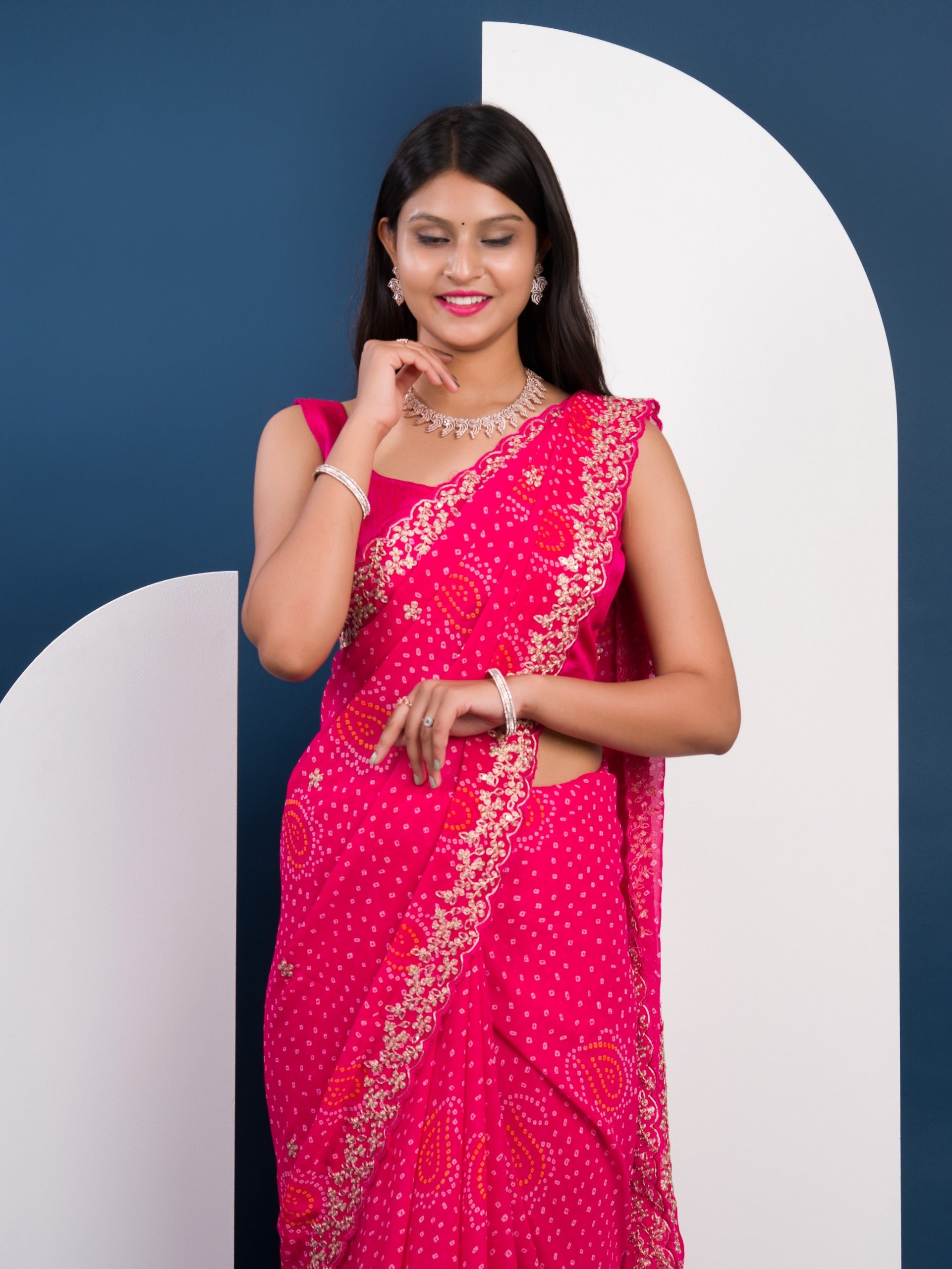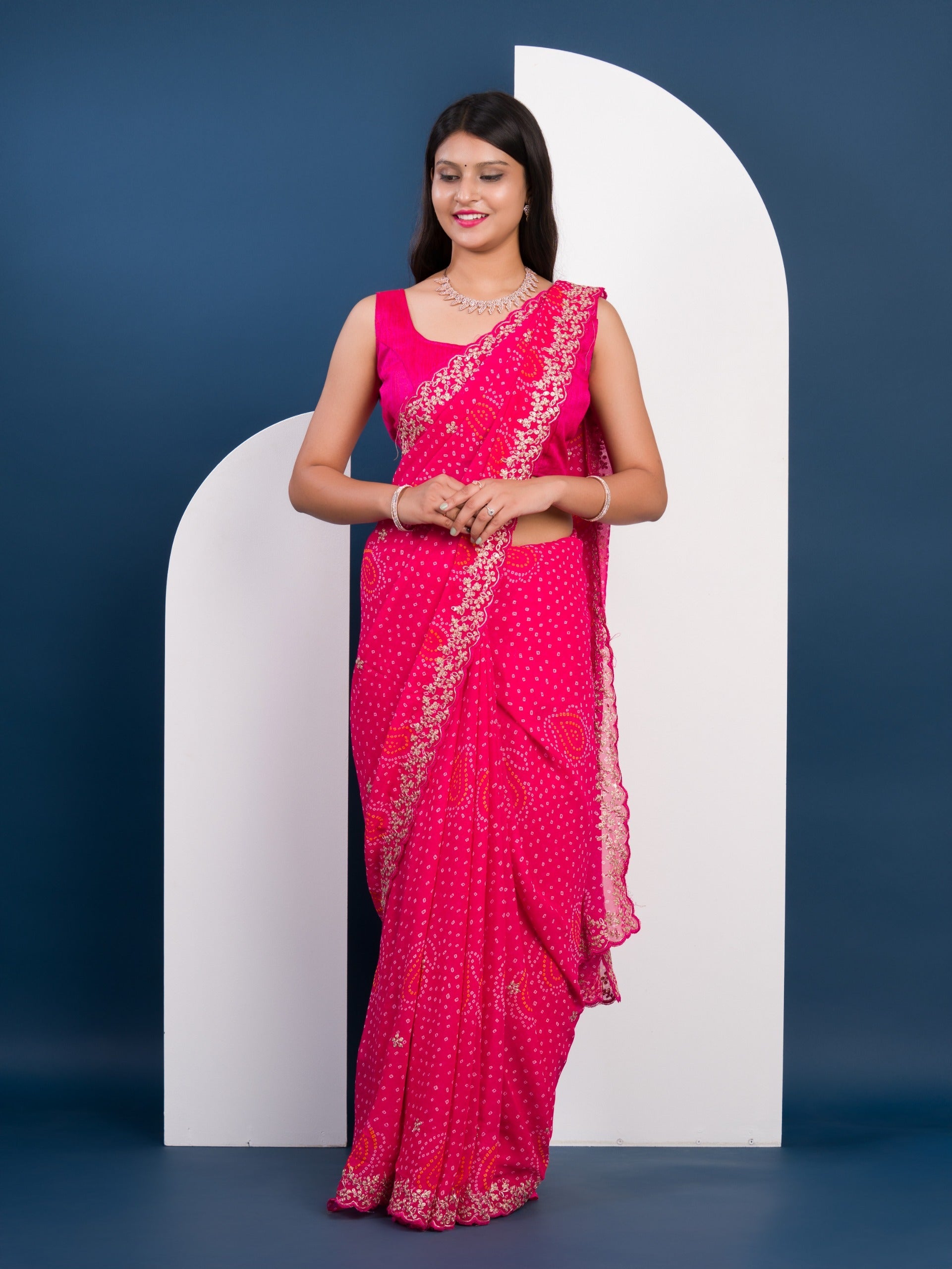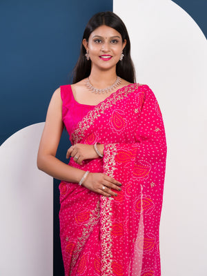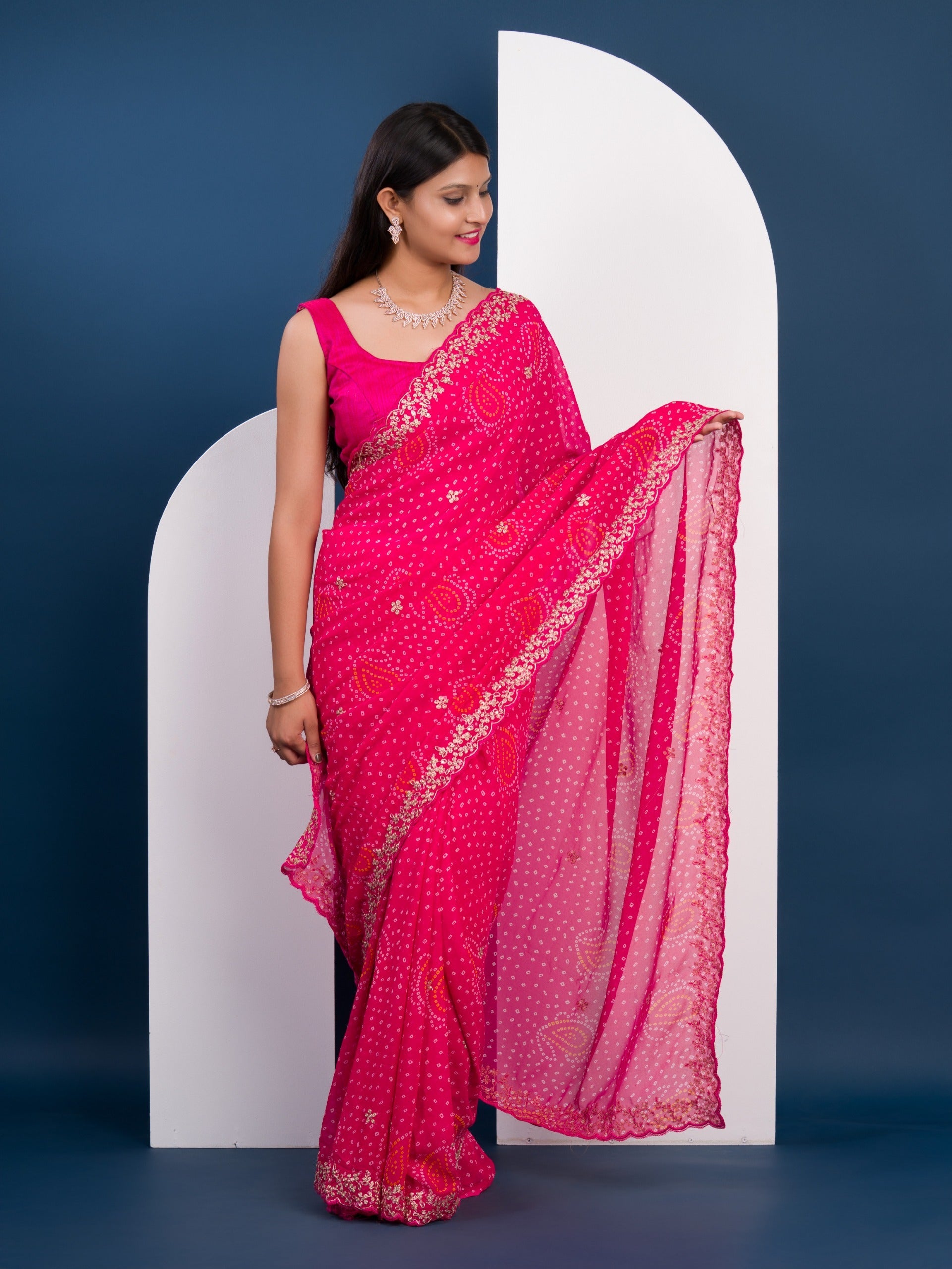 Tanmira Launching New Pure Mos Chiffon Hand Pitta Aari Work Bandhani Saree SWA