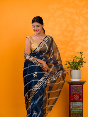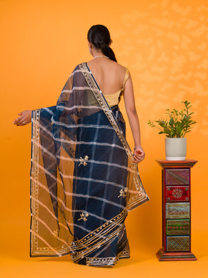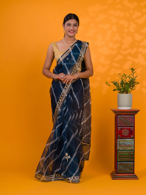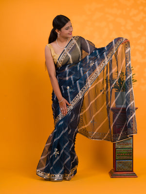 Tanmira New Arrival Organza Leheriya Style With Gotapatti Work Saree MHS
