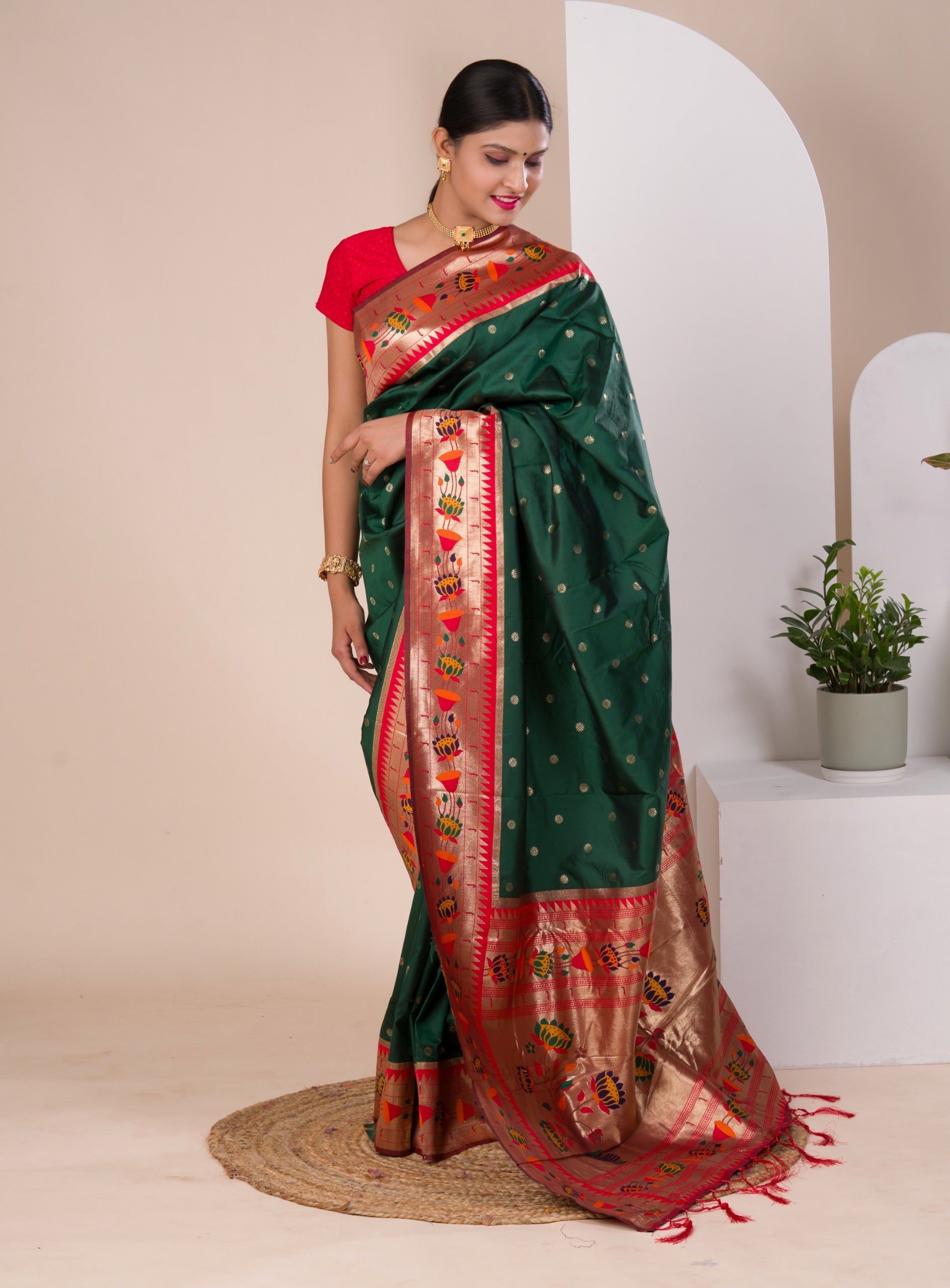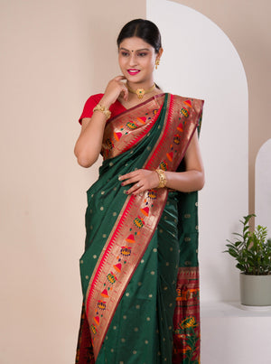 Tanmira New Arrival Paithani silk Beautiful Zari Border Pallu saree SANG