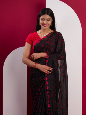 Tanmira New Beautiful Chinon Silk Bandhani Style Saree SUL
